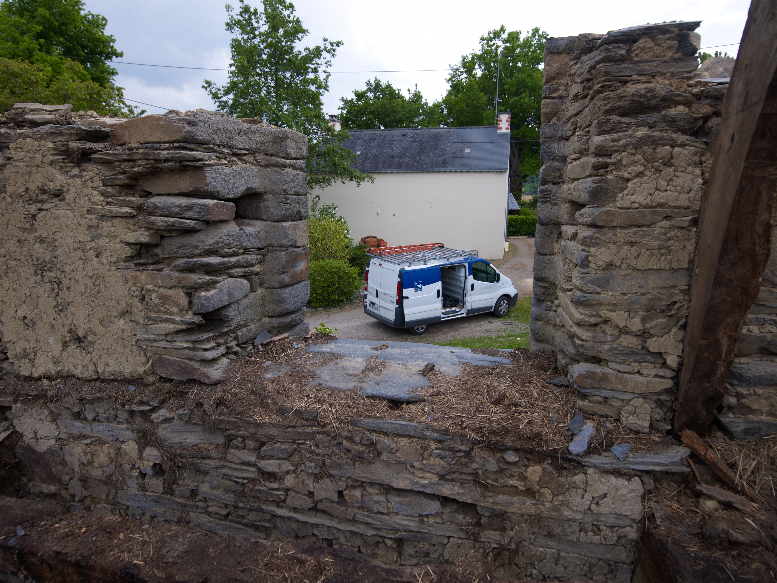 Ferme : l'ancienne lucarne au-dessus de la porte d'entrée, depuis l'intérieur (état en 2013)Immatriculation