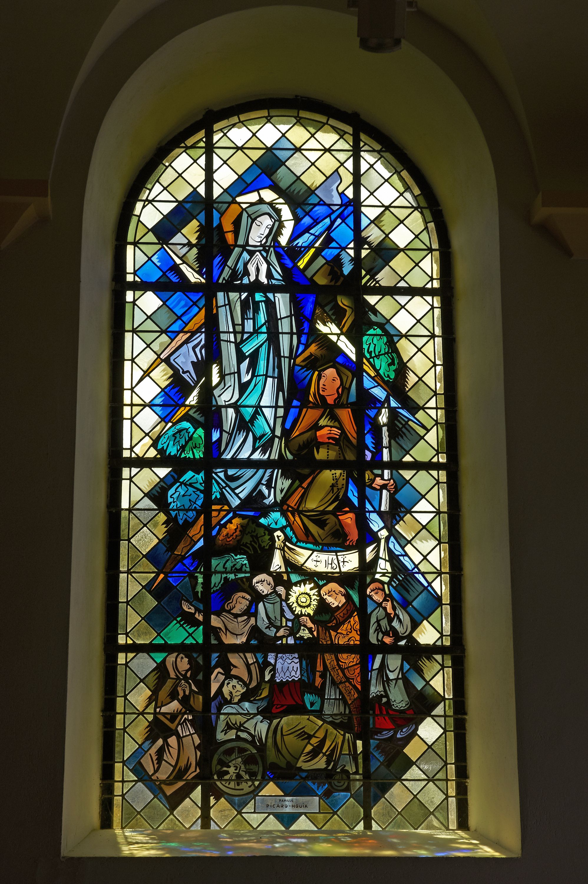 Verrière de la baie 6 : Notre-Dame de Lourdes (état en 2013)Immatriculation