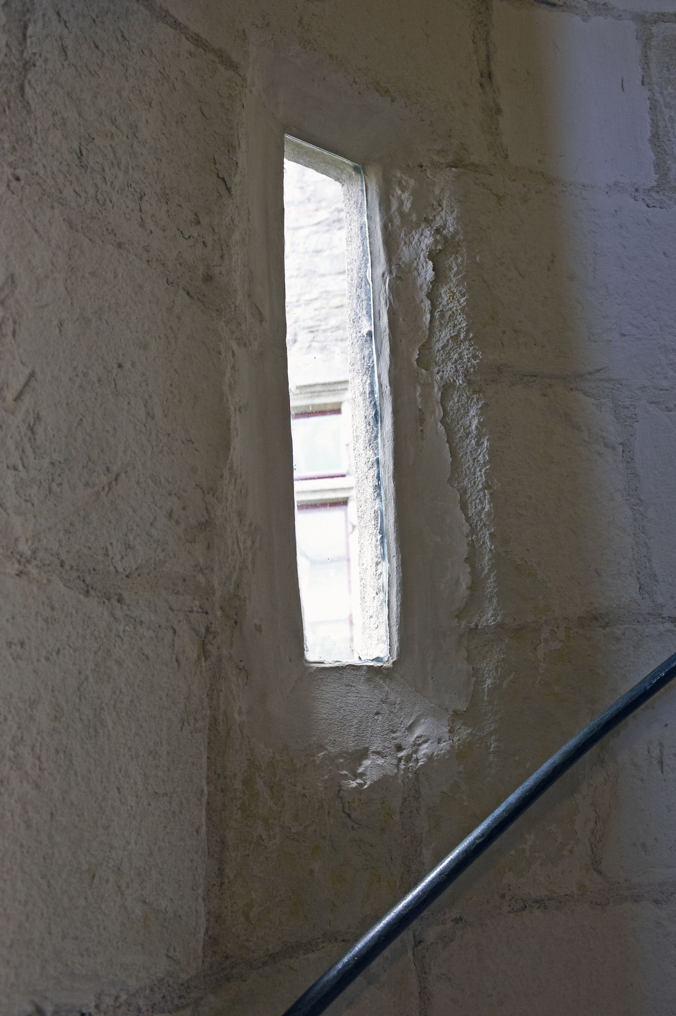 Tour d'escalier secondaire au nord, mur et fenêtre en calcaire entre le 1er et le 2d étageImmatriculation