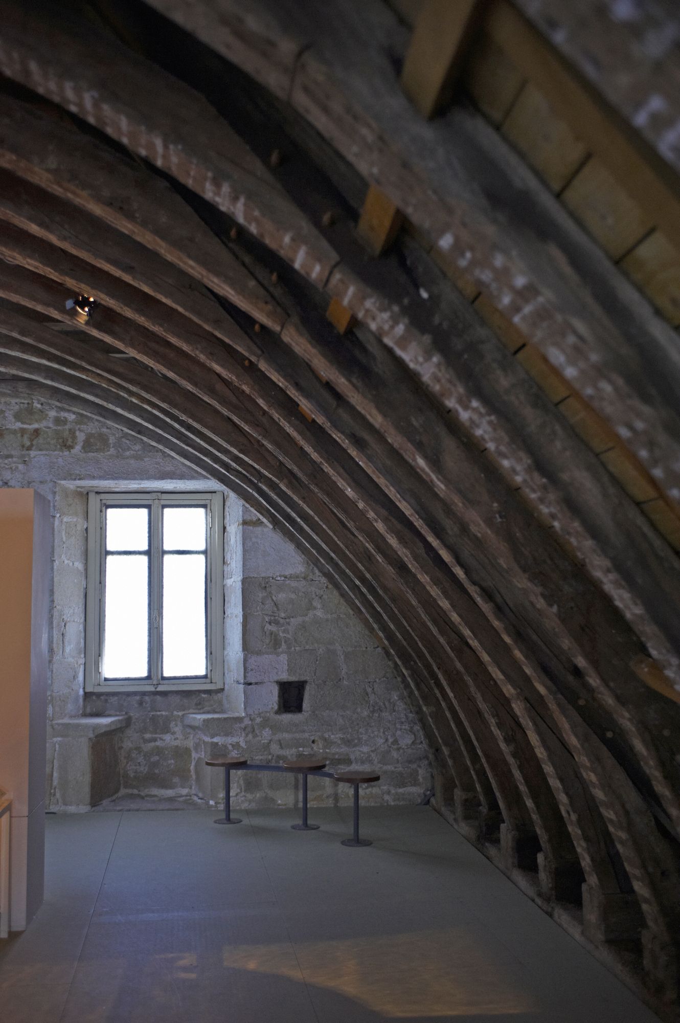 Corps principal, dernier étage, pièce sous charpente, fenêtre nord et charpente en berceauImmatriculation