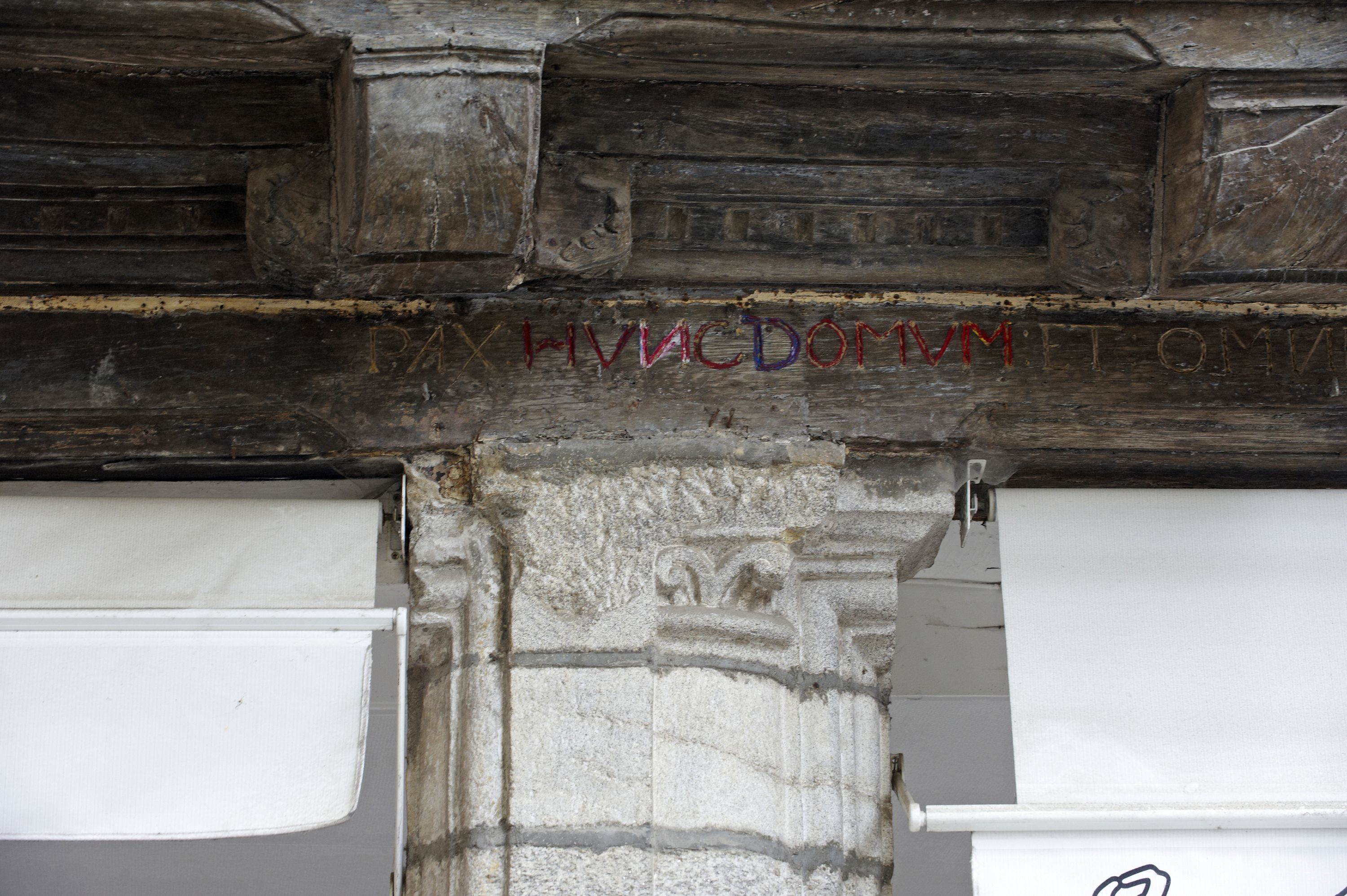 Façade sur rue, rez-de-chaussée, sablière, inscriptionImmatriculation