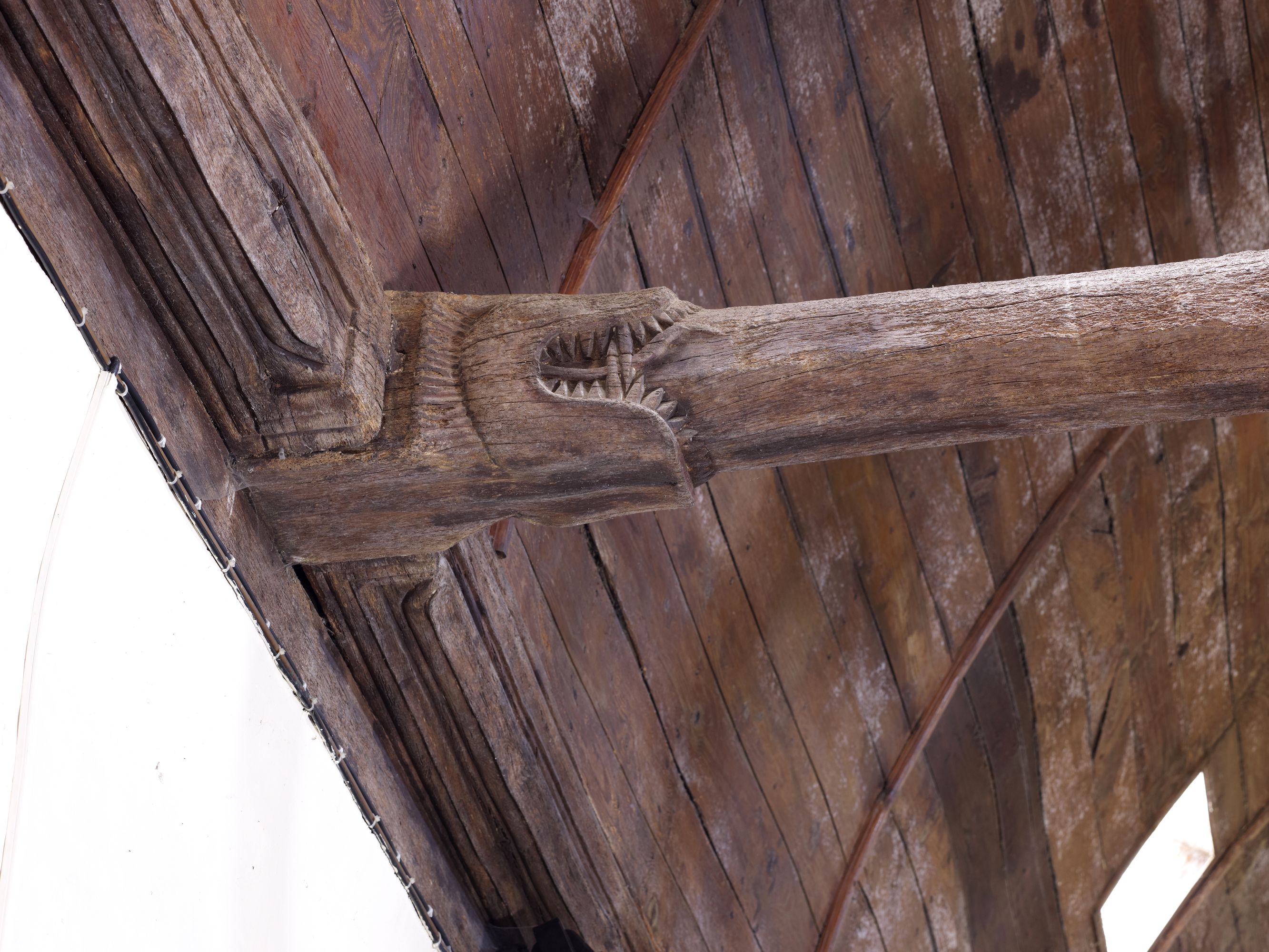 Église, nef, charpente : 'engoulant' du 7e entrait à partir de l'est (état en 2013)Immatriculation