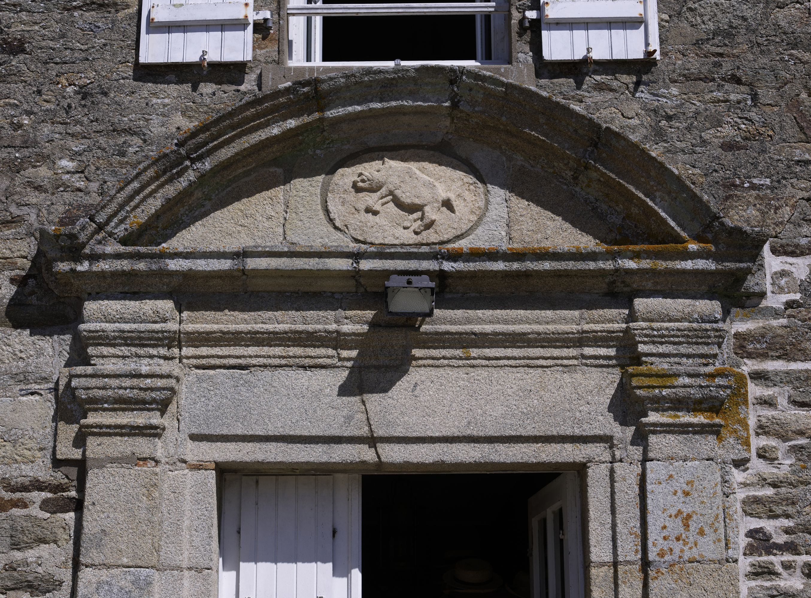 Logis, élévation, détail du fronton de la porte avec armes de Cancoët rapportéesImmatriculation