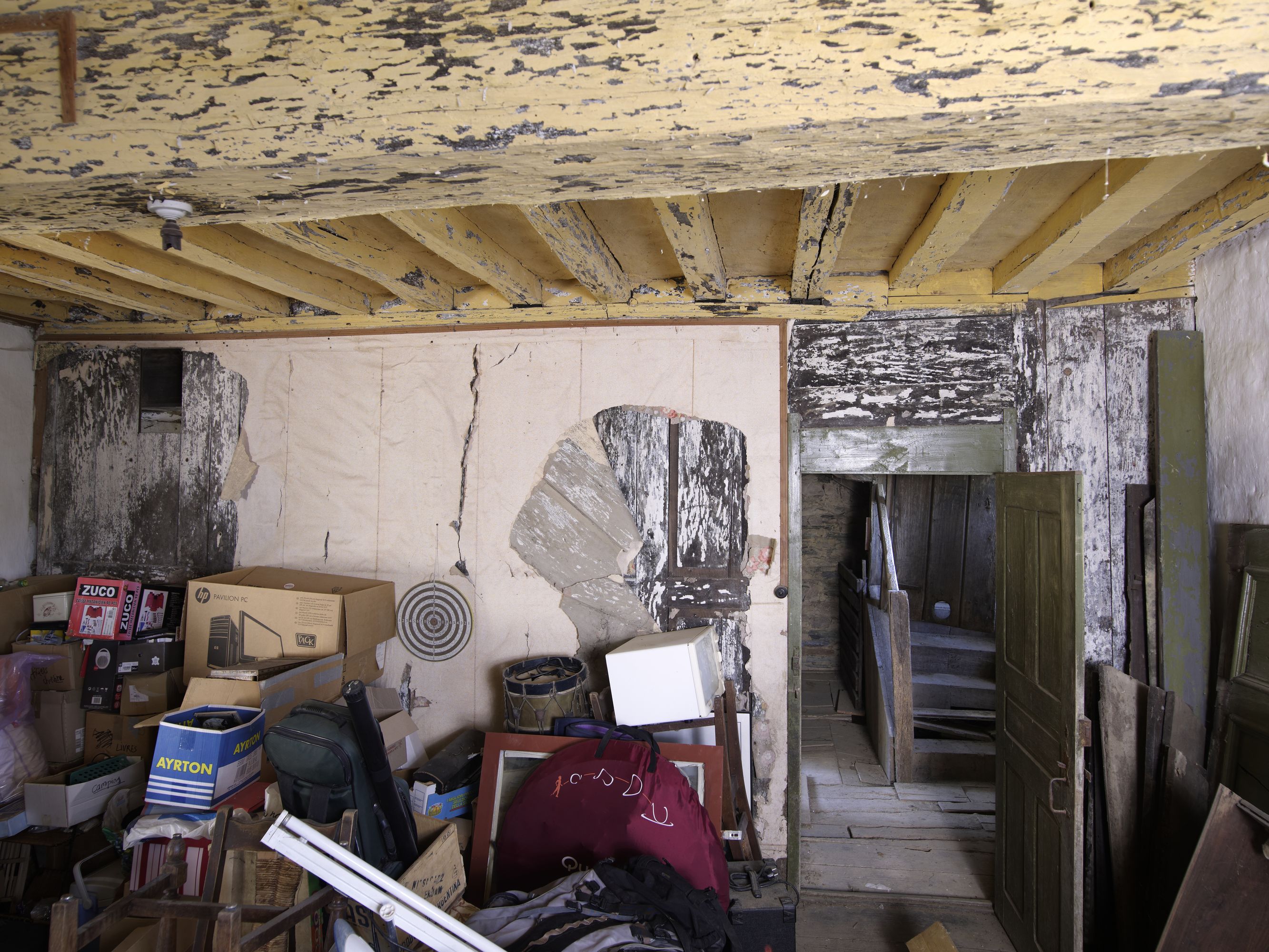 Salle à l'étage, vue vers l'ouest et le départ de l'escalier secondaire vers le combleImmatriculation