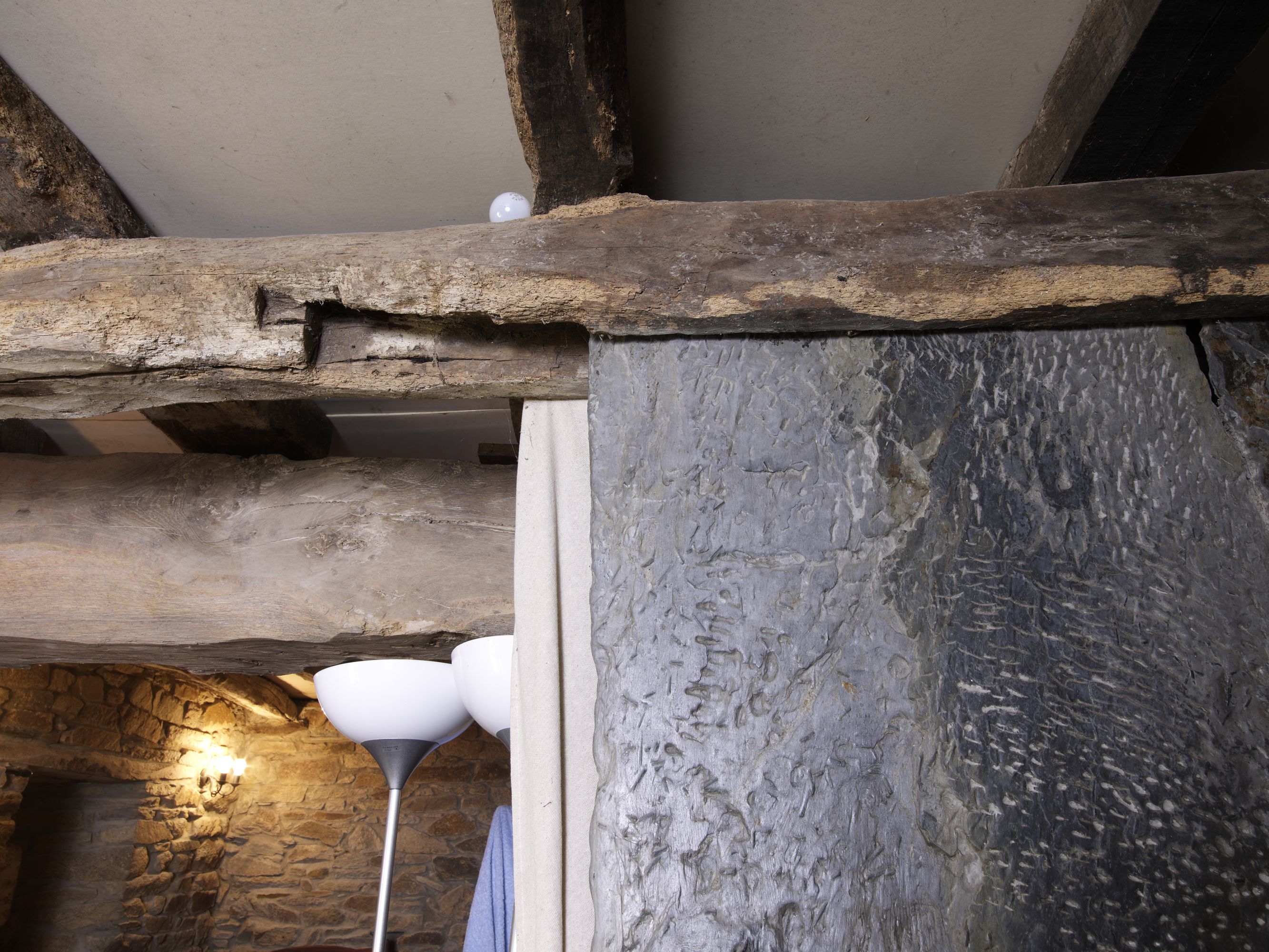 Logis sud, poutre rainurée pour insertion de la cloison en palisImmatriculation