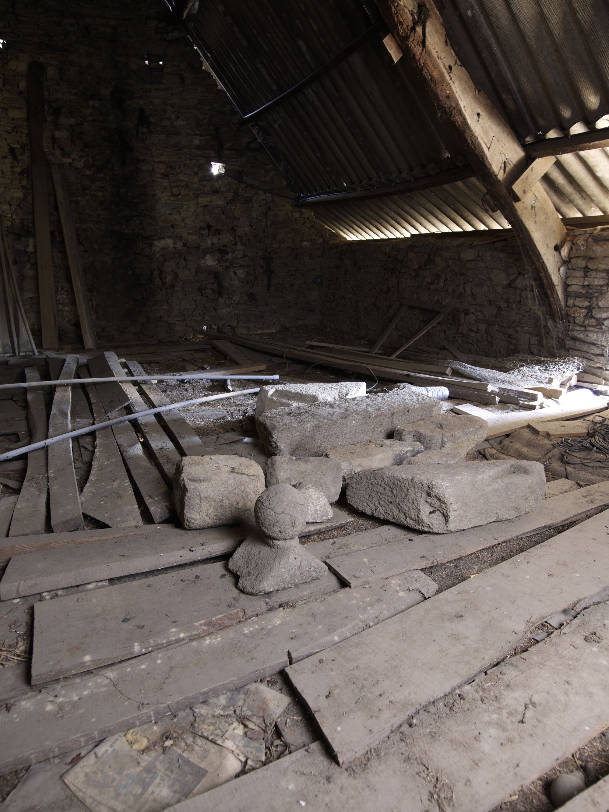 Pierres de la lucarne démontée déposées dans le grenierImmatriculation