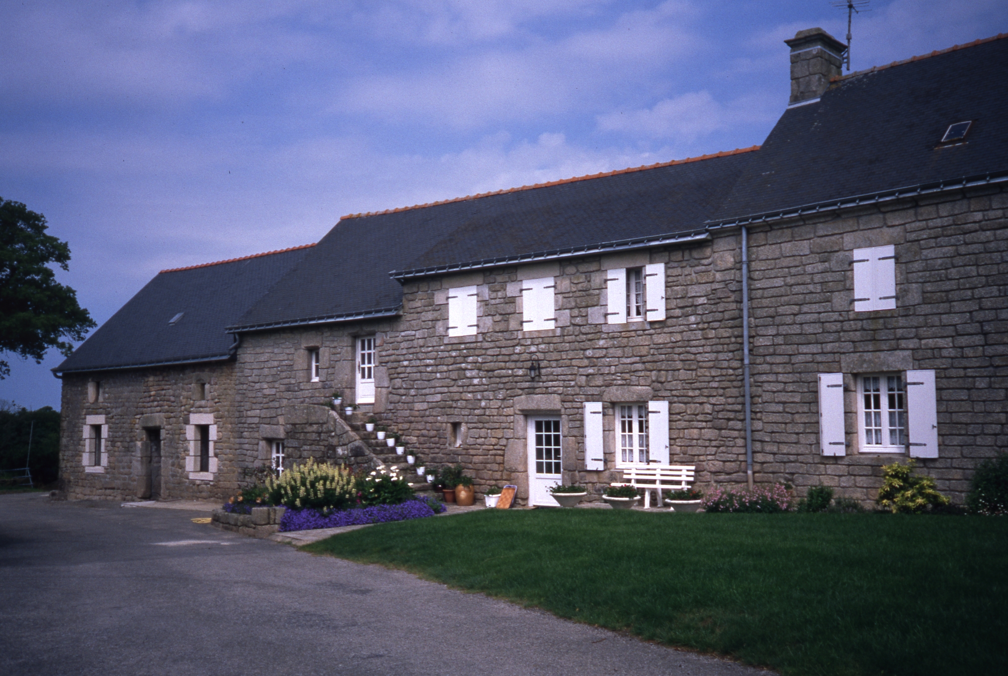Nervouedic. Alignement associant un logis sur dépendance avec escalier extréieur et un logis étable rehaussé, les deux du 17e siècle, complétés d'un logis de type ternaire, 19e siècleImmatriculation