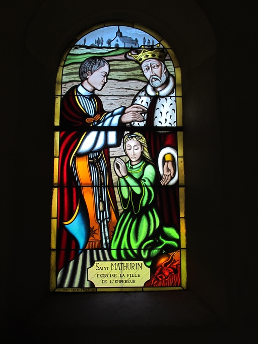 Verrière de la baie 1 : Saint Mathurin exorcise la fille de l'empereur (état en 2013)Immatriculation
