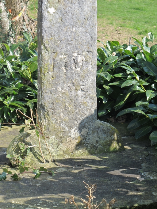 Croix de chemin : partie inférieure du fût portant la date 1787 (état en 2013)Immatriculation