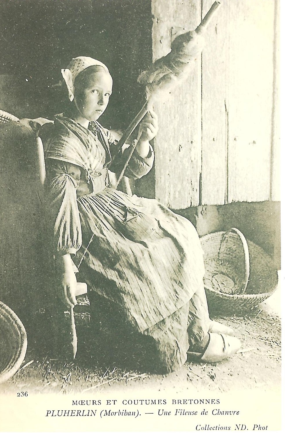 Carte postale ancienne : fileuse de chanvre de PluherlinImmatriculation