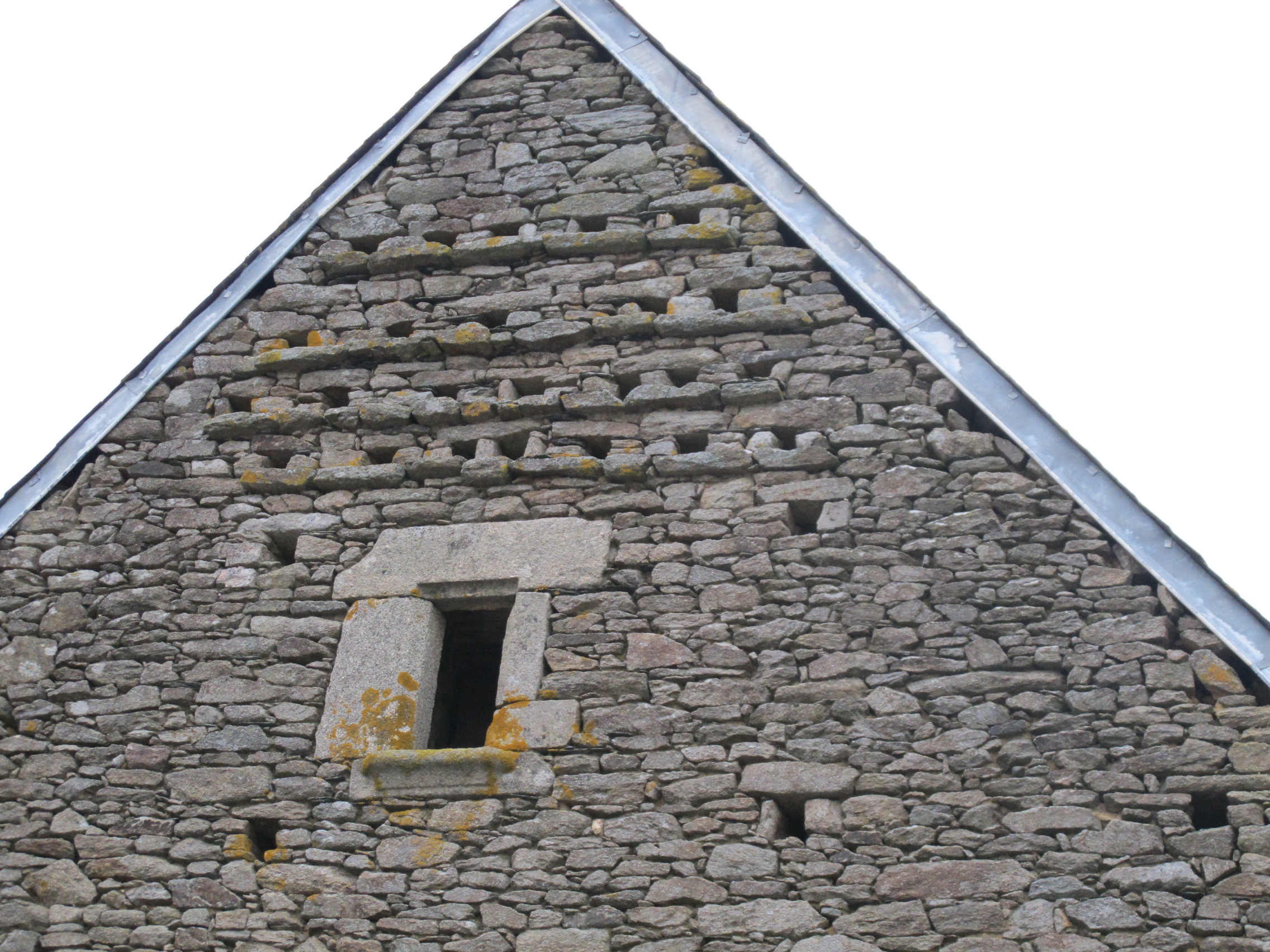 Trébrun, grange seigneuriale, 17e siècle : pignon garni de rangs de boulinsImmatriculation