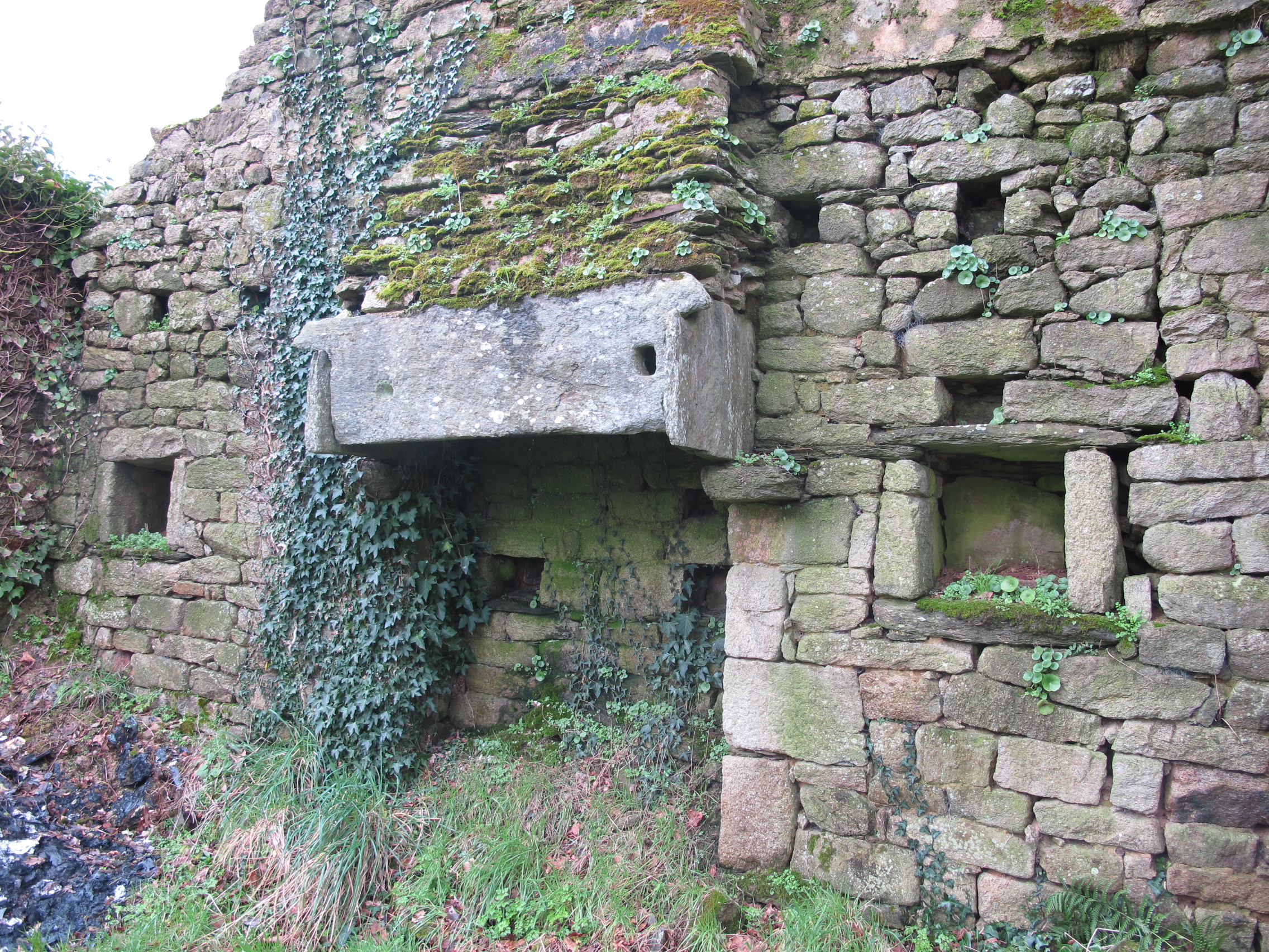 Kerampiff, maison en ruines, cheminée, granite et linteau schiste, 17e siècleImmatriculation