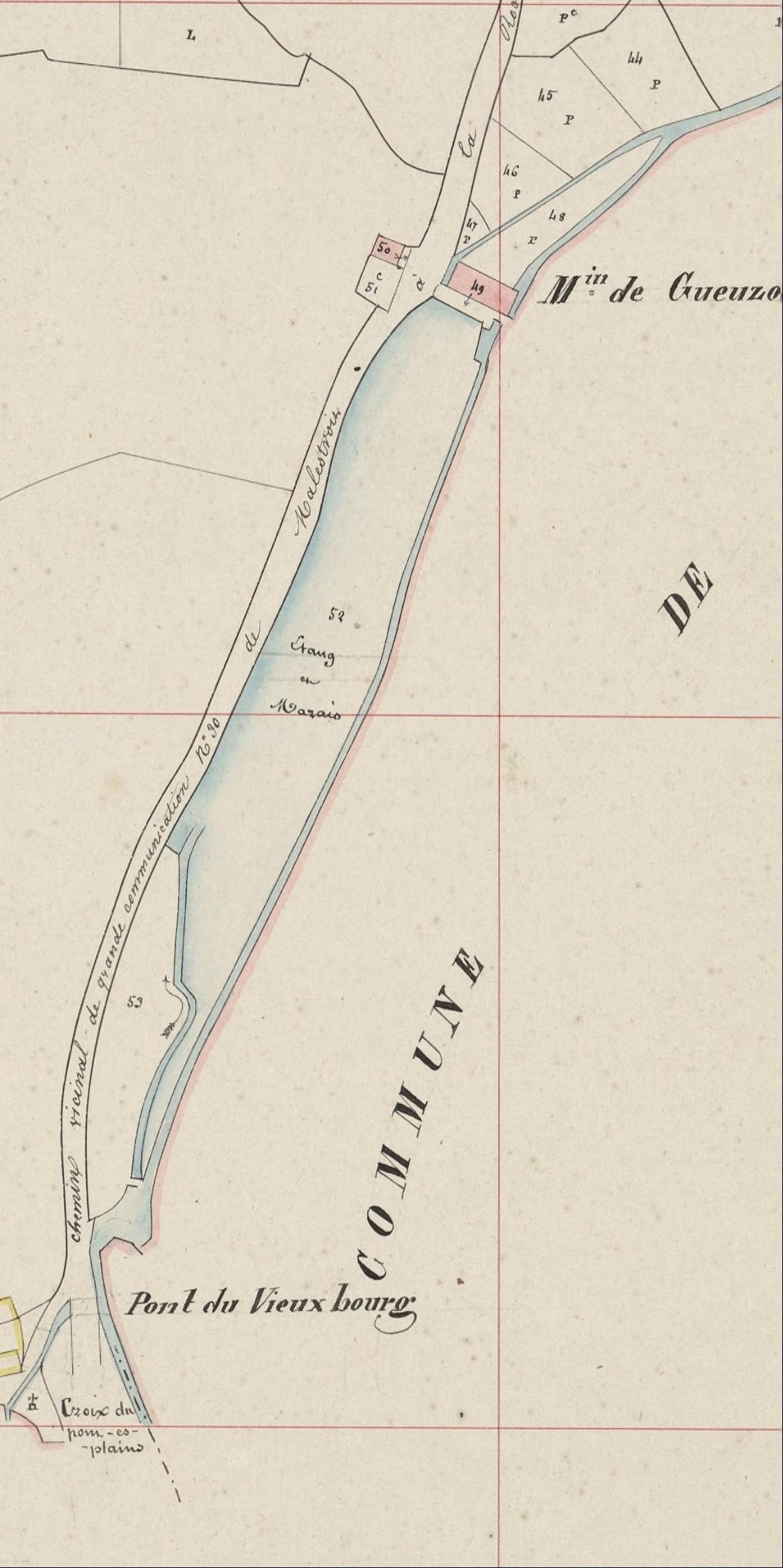 Moulin de Gueuzon. Extrait du plan cadastral de 1840 (AD Morbihan, 3 P 217)Immatriculation