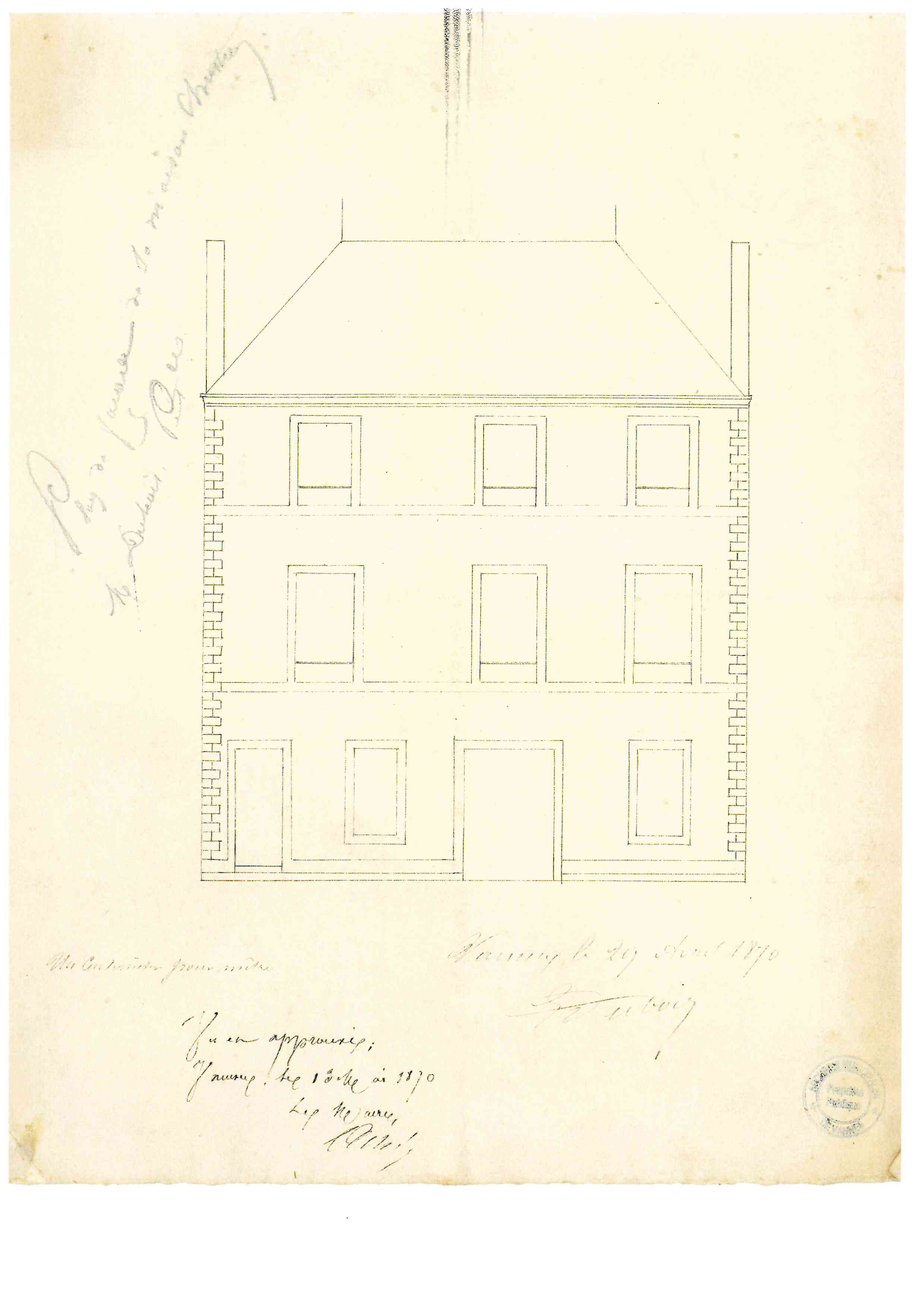 Projet de façade pour monsieur Dubois, 29 avril 1870. AM Vannes 1O 216 voirie urbaine travaux.Immatriculation