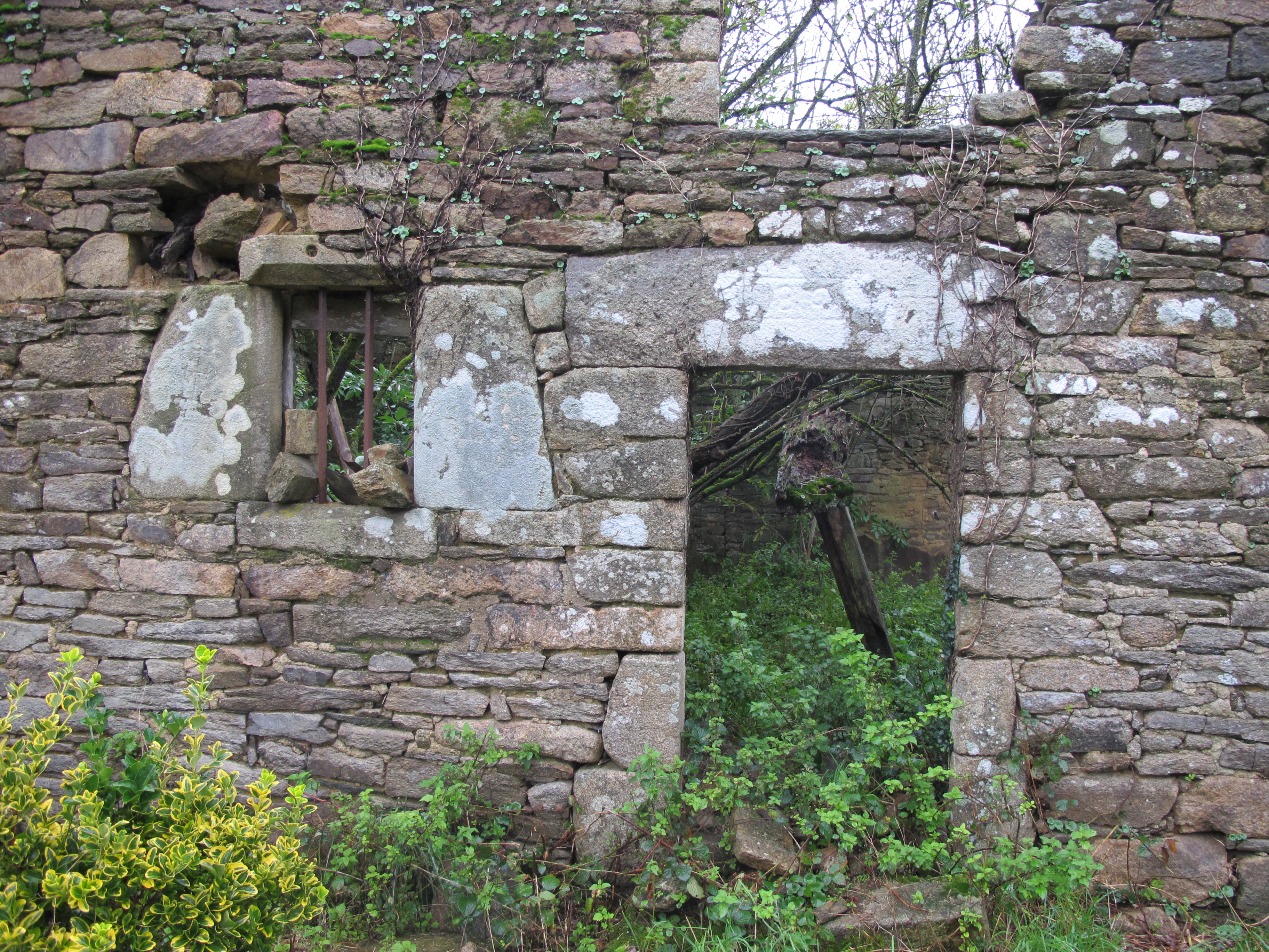 Elévation sud, détail des ouvertures du logis est : porte 1810, fenêtre en remploi 17e siècleImmatriculation