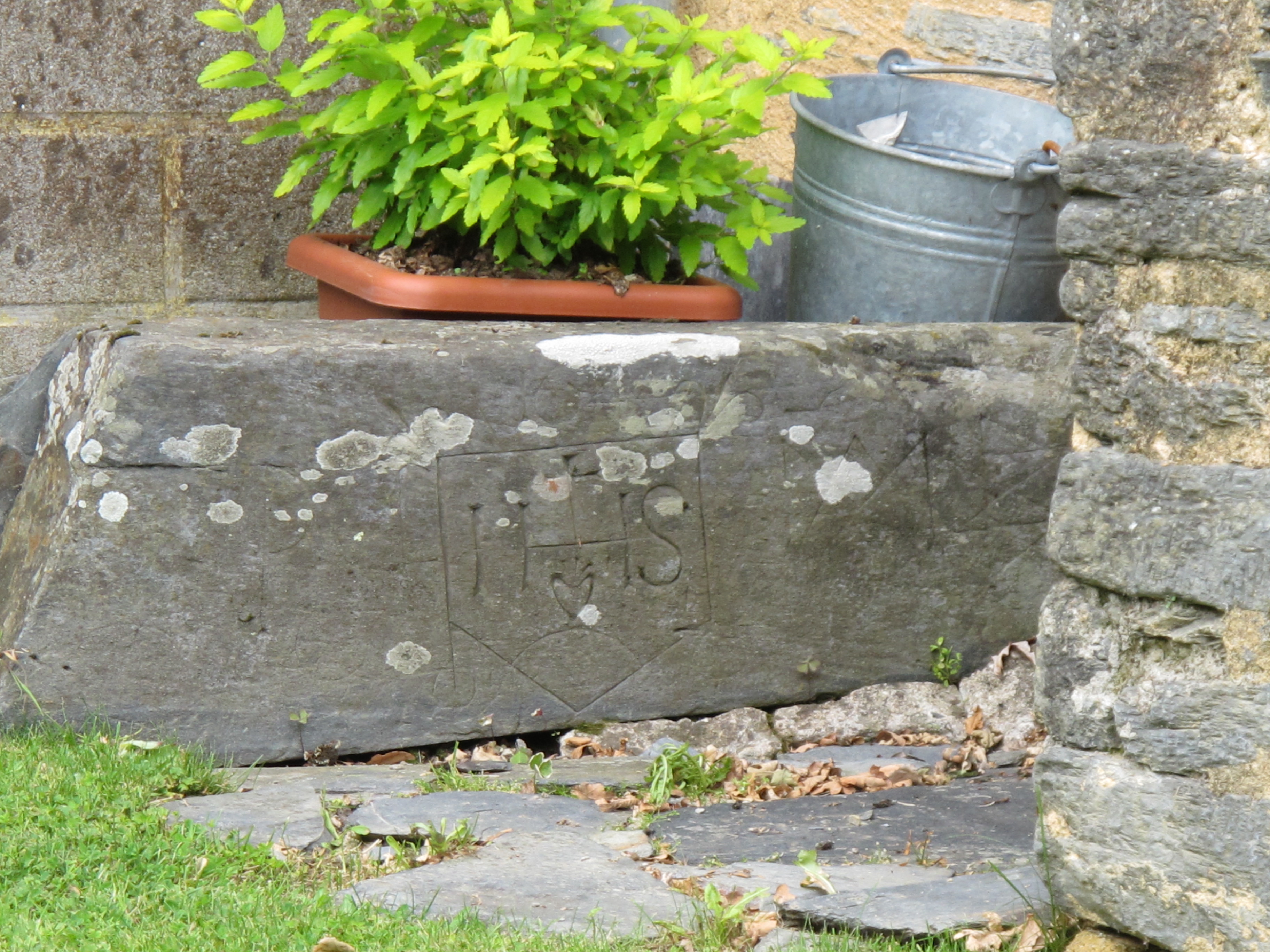Alignement au nord de la route de desserte : linteau (?) gravé près du puits de la ferme 3Immatriculation