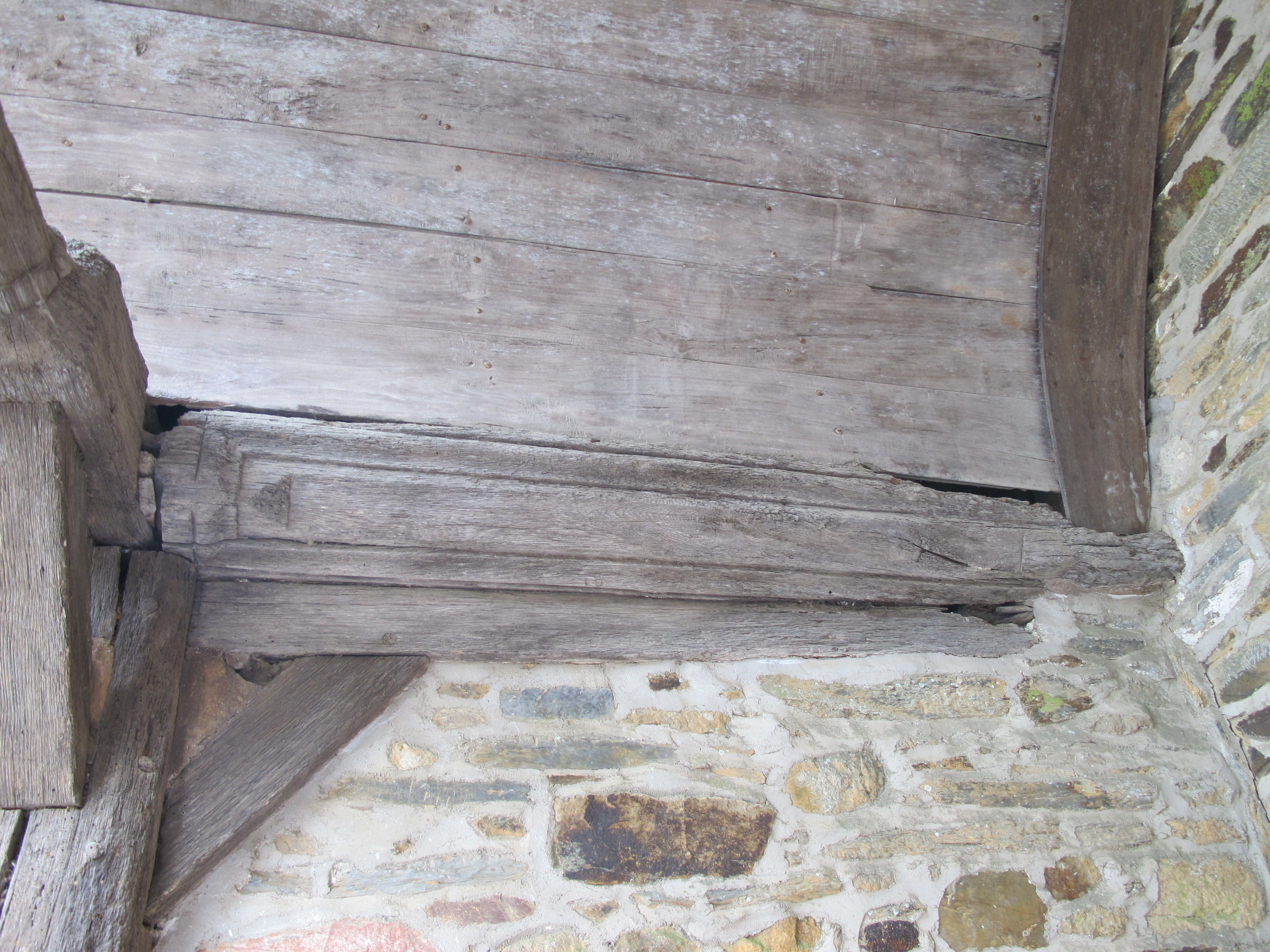 Église, porche sud, mur ouest : sablière moulurée (état en 2013)Immatriculation
