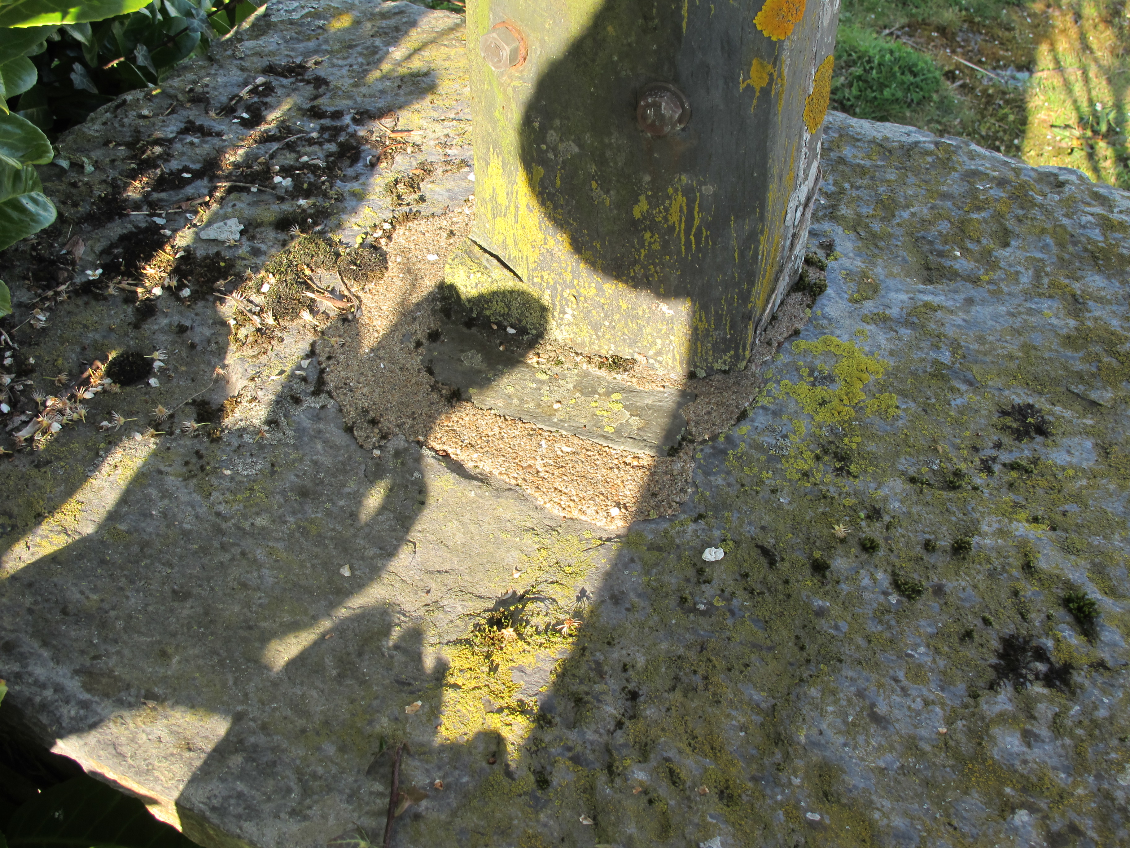 Croix de chemin : encoche partiellement comblée de ciment autour de la croix (état en 2013)Immatriculation