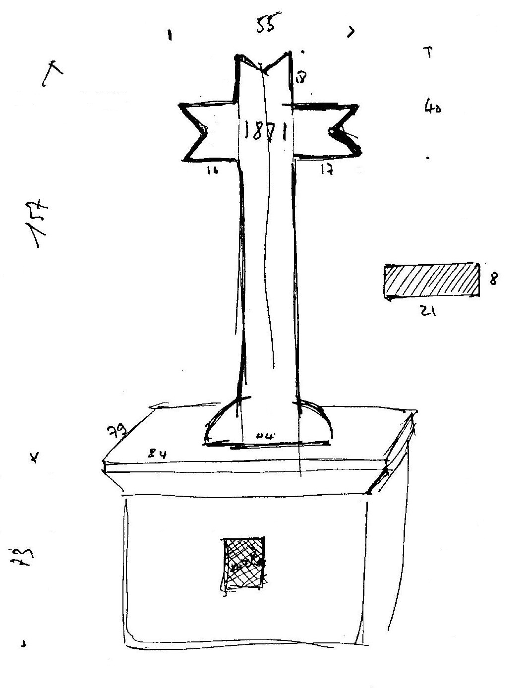 Croix de chemin : schéma réalisé par J. P. Ducouret en 1983Immatriculation