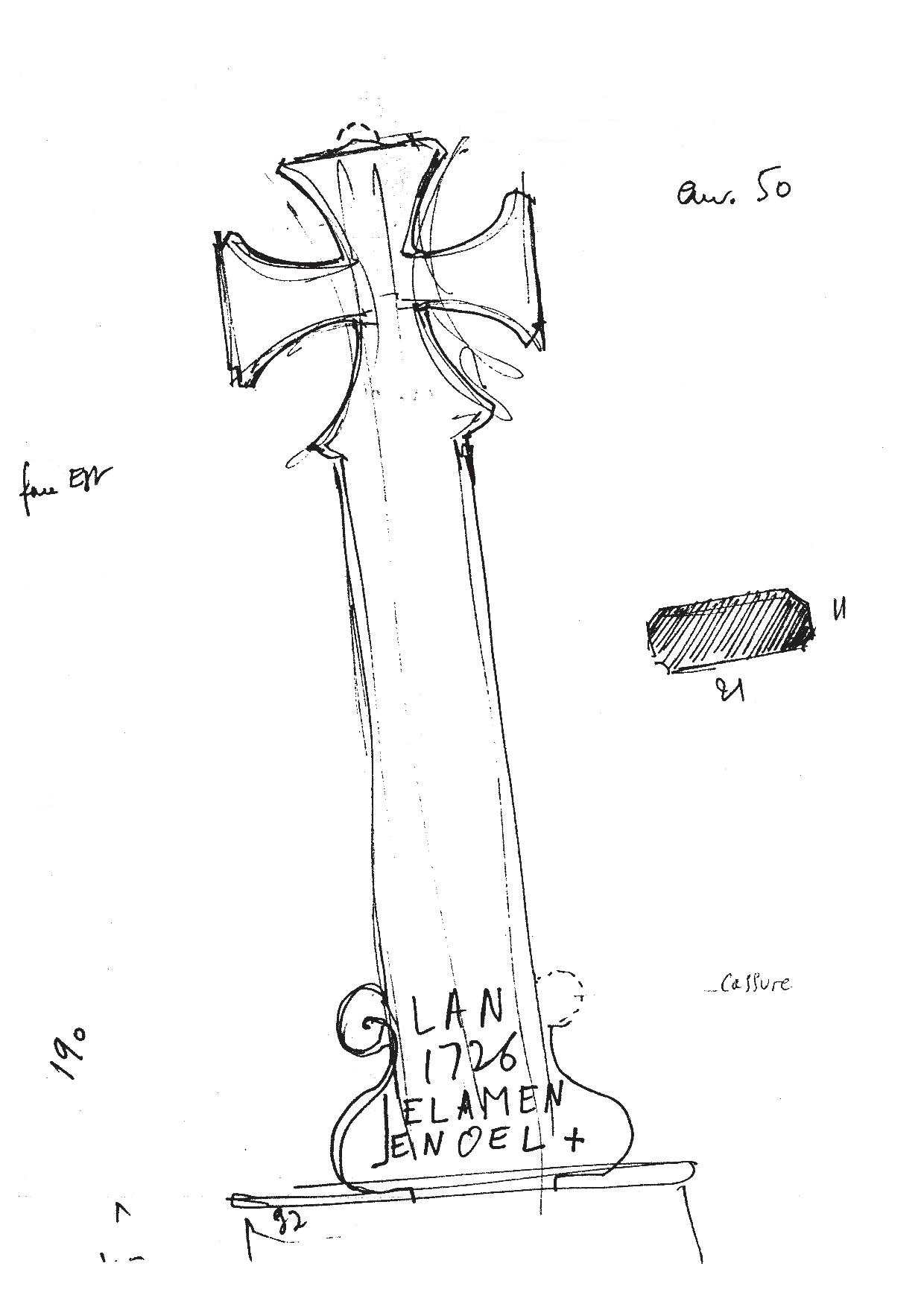 Croix de chemin : schéma réalisé par J. P. Ducouret en 1983Immatriculation