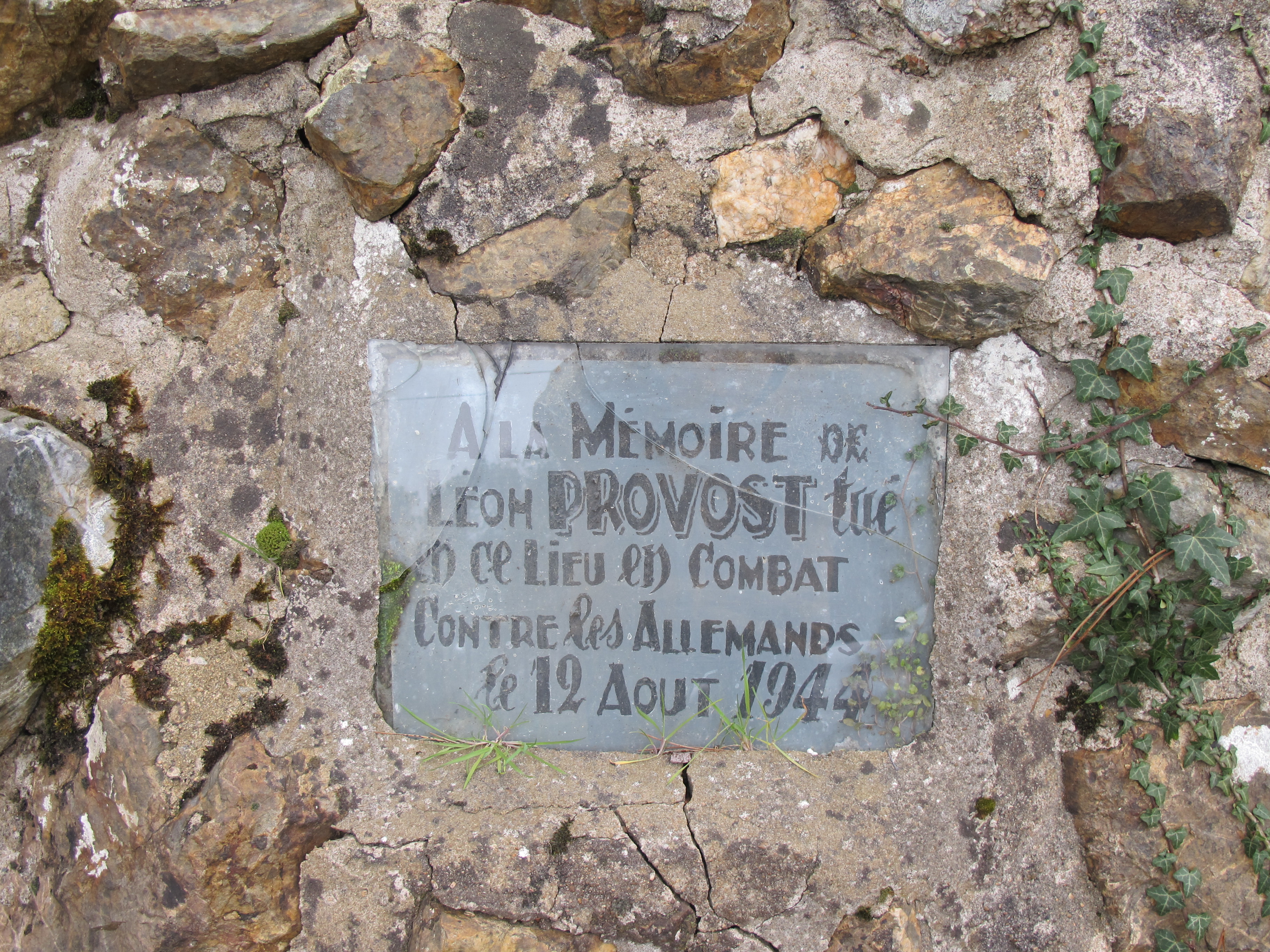 Les Rochettes, croix commémorative : inscription peinte (état en 2013)Immatriculation