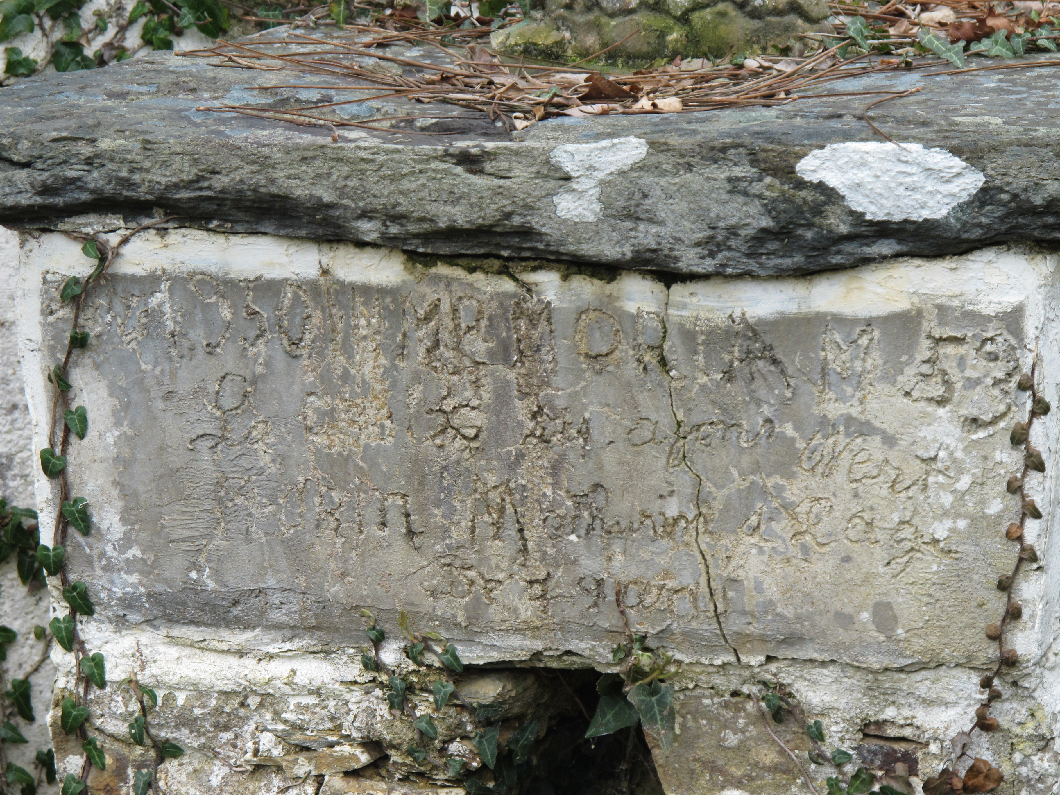 Vaulaurent, croix commémorative : inscription (état en 2013)Immatriculation