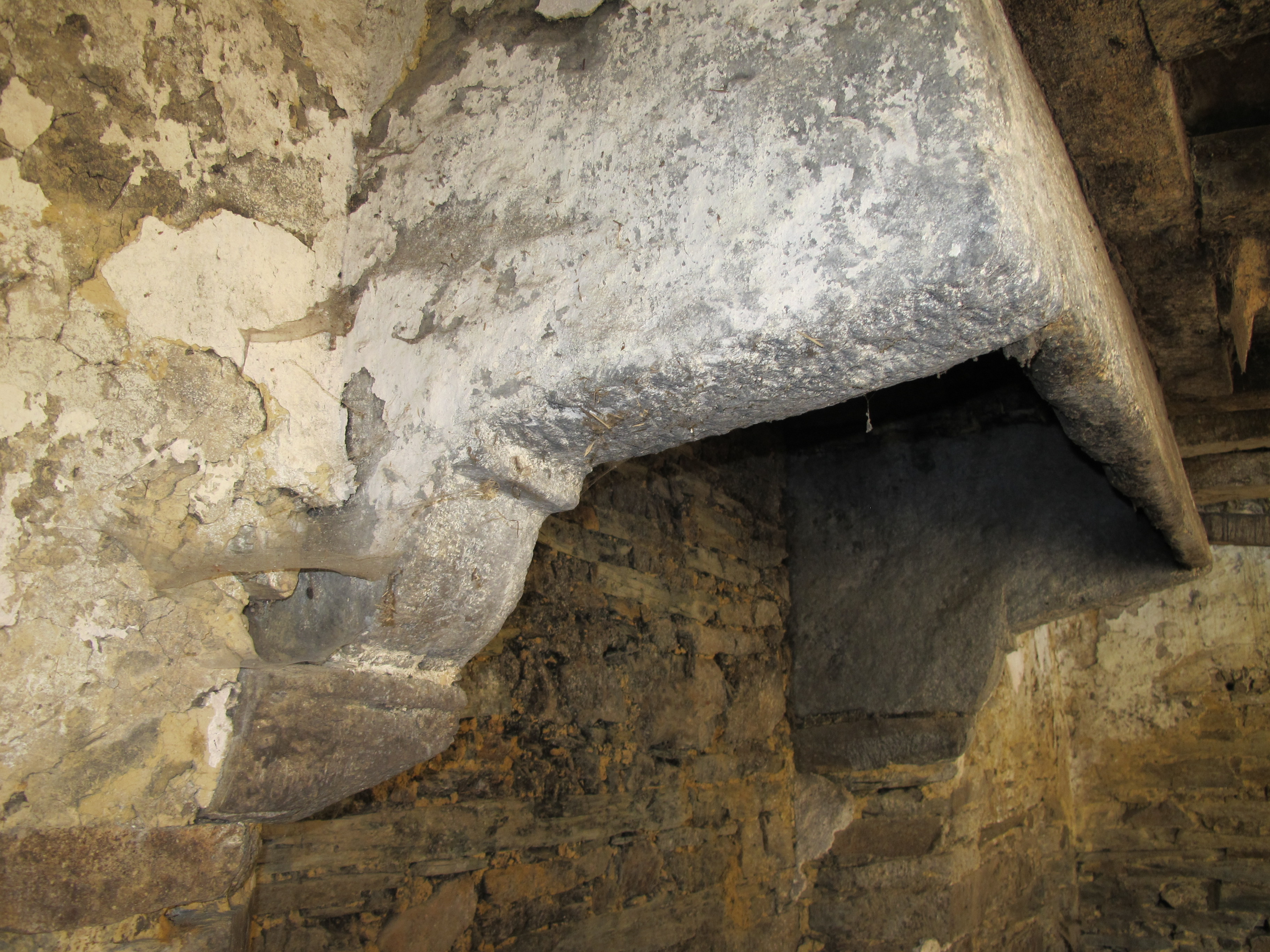 Ferme, logis jumelé ouest, cheminée de la salle : profil mouluré de la console (état en 2013)Immatriculation