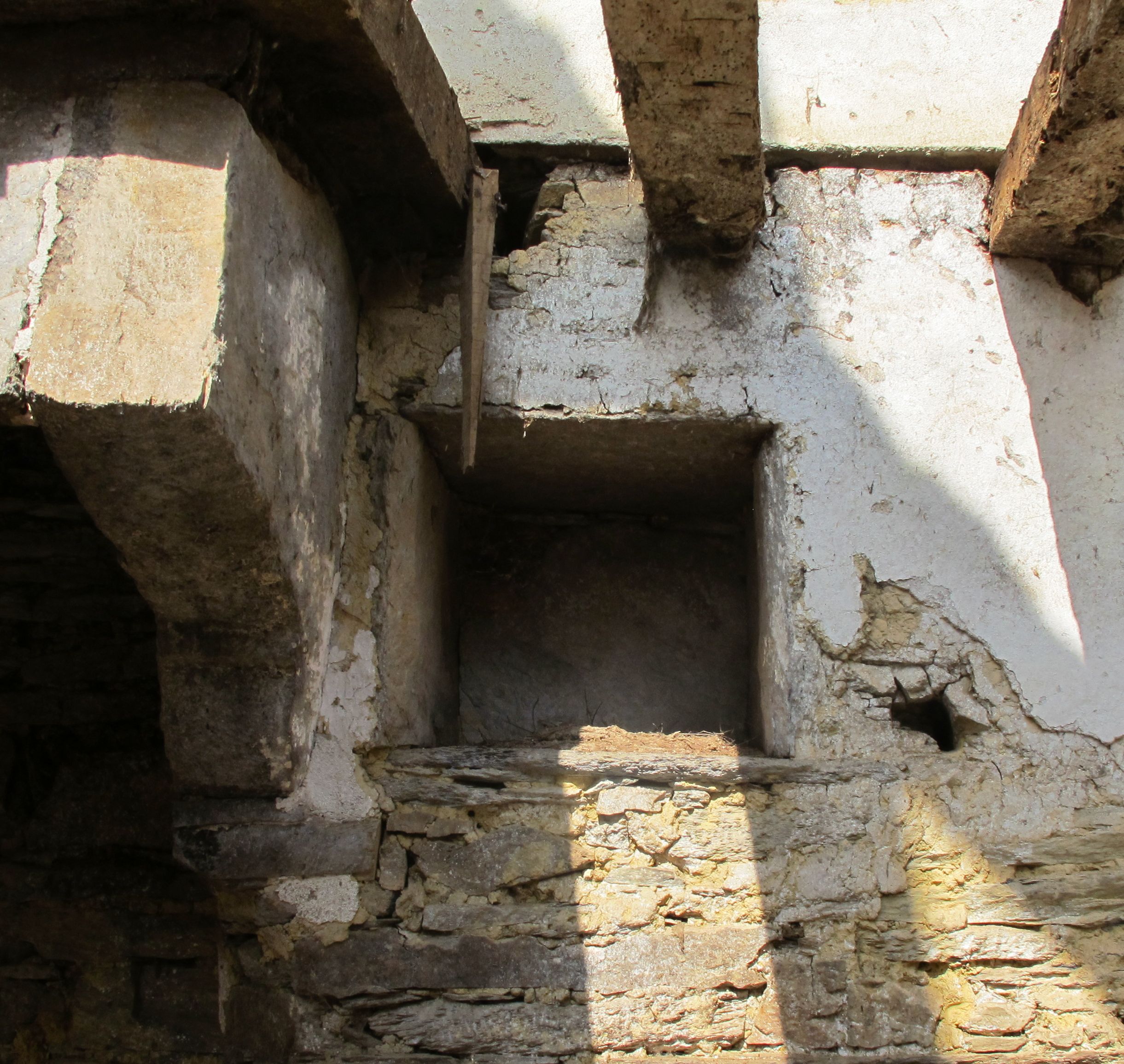 Ferme, logis jumelé ouest : niche murale revêtue de schiste, près de la cheminée (état en 2013)Immatriculation