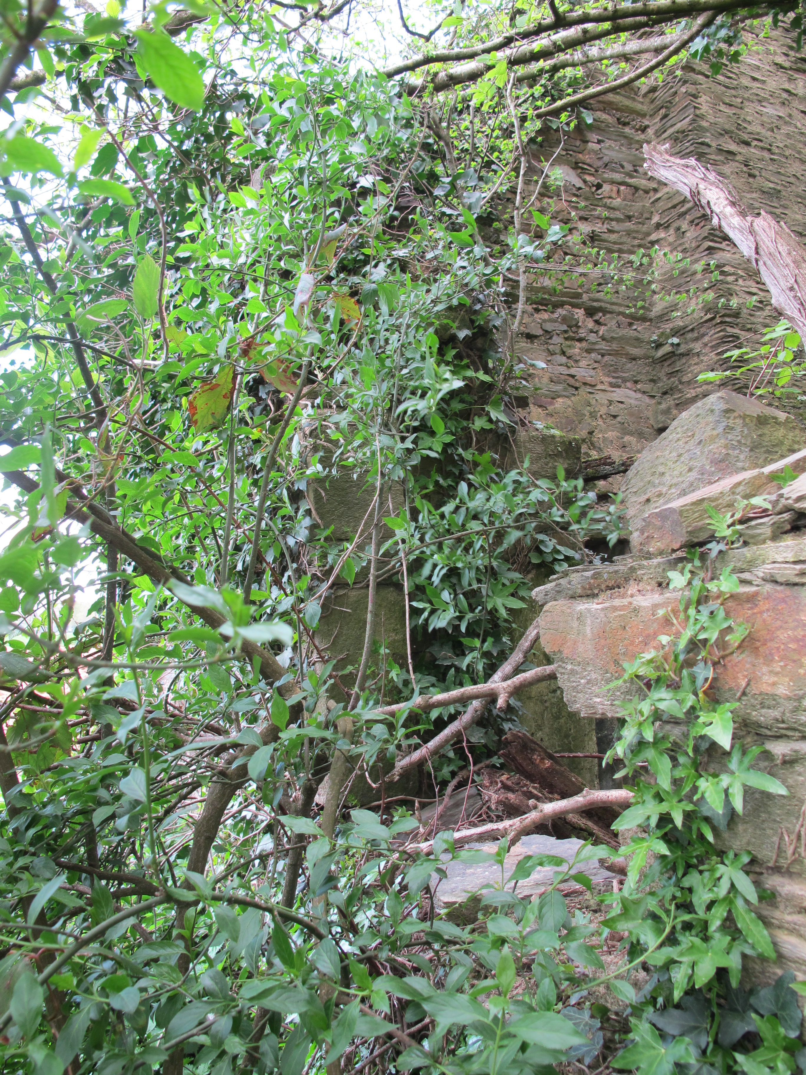 Maison, mur sud : vestiges de la fenêtre, à gauche de la porte (état en 2013)Immatriculation