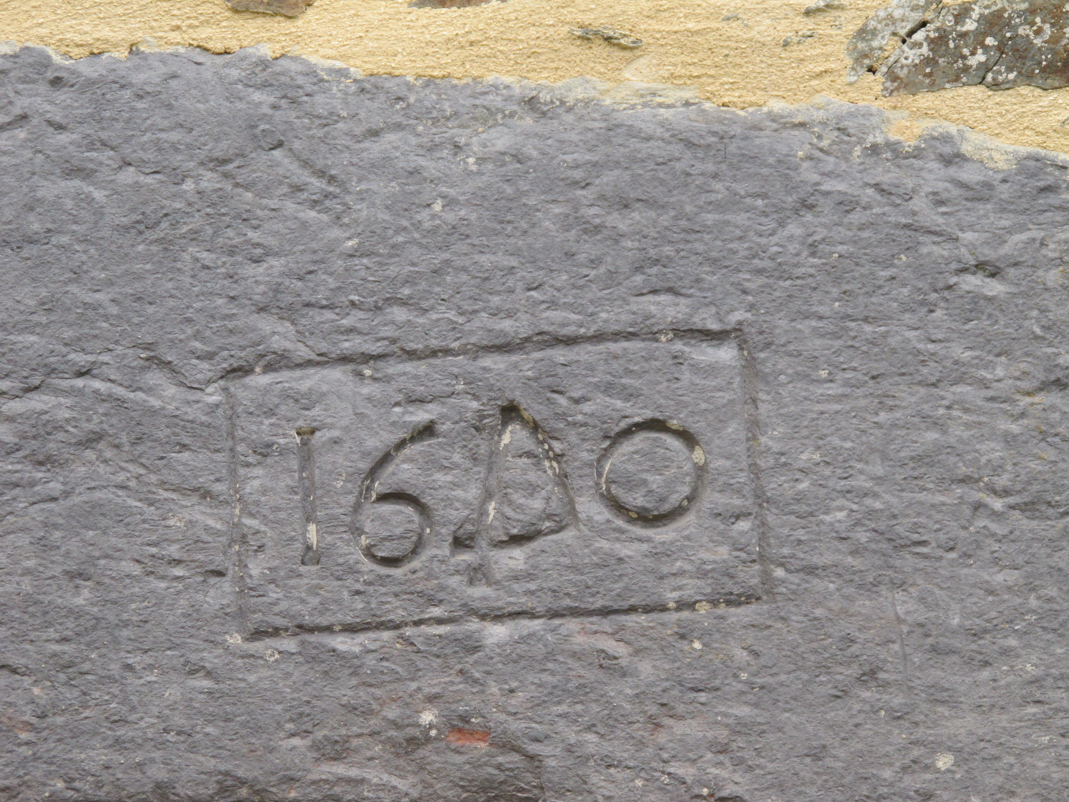 Les Rues Noblet, maison 3 : date gravée dans un cartouche sur le linteau de la porte ; le chiffre 4 est gravé à l'envers (état en 2013)Immatriculation