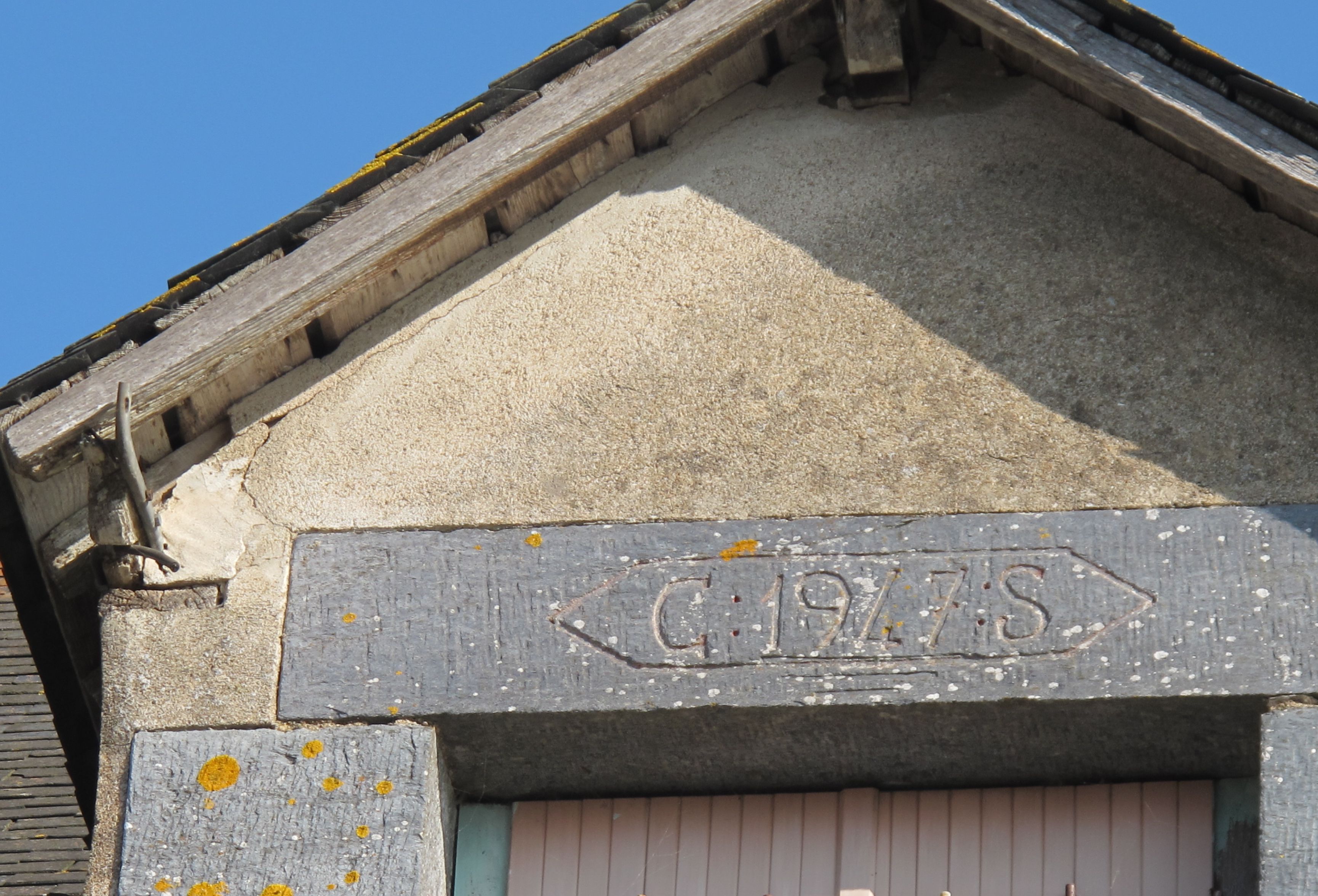 Maison 1 : linteau de la lucarne portant la date 1947 encadrée des lettres G S (état en 2013)Immatriculation