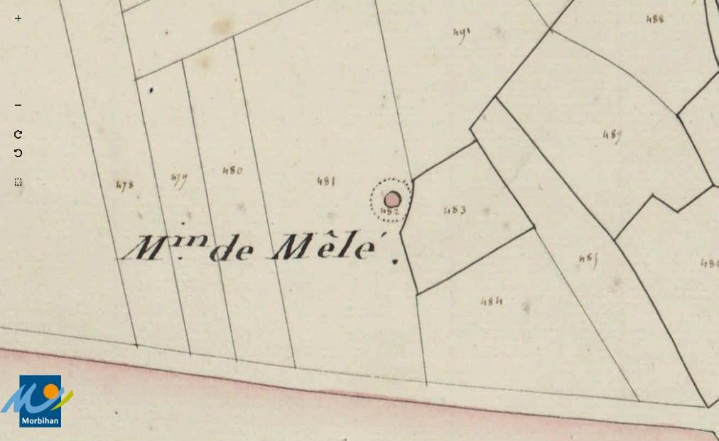 Le moulin à vent de Mêlé sur le cadastre de 1829 (A. D. du Morbihan, 3 P 75/7)Immatriculation