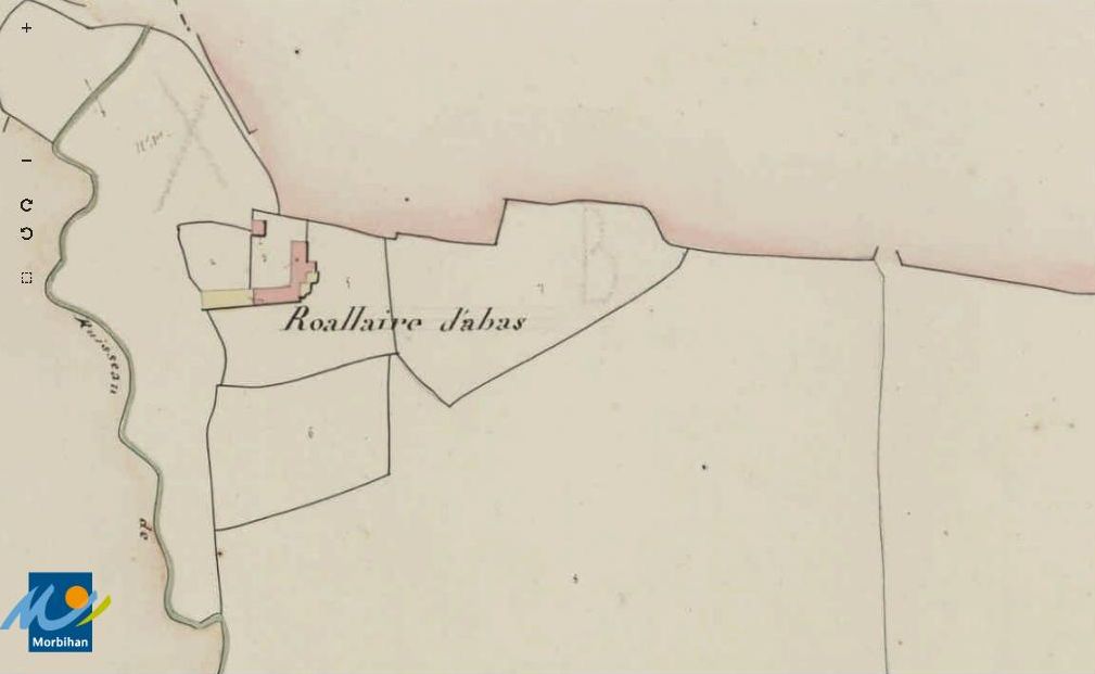 Le manoir de Roallaire d'abas sur le cadastre de 1829 (A. D. du Morbihan, 3 P 75/17)Immatriculation