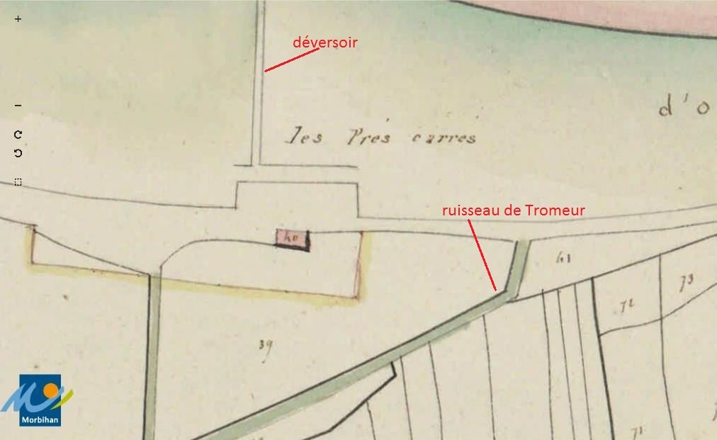 Le site d'écluse de la Ville aux Fruglins sur le cadastre de 1829 (A. D. du Morbihan, 3 P 152/7)Immatriculation