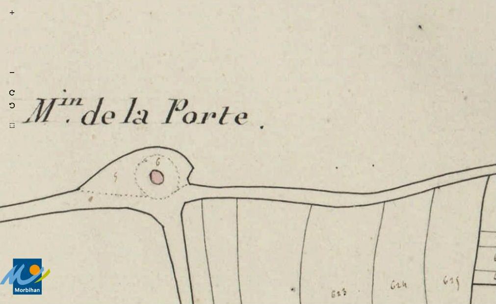 Le moulin à vent de la Porte sur le cadastre de 1829 (A. D. du Morbihan, 3 P 270/5)Immatriculation