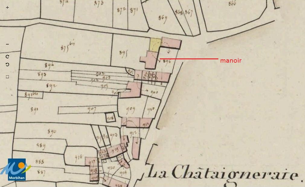Le manoir de la Châtaigneraie sur le cadastre de 1829 (A. D. du Morbihan, 3 P 270/5)Immatriculation