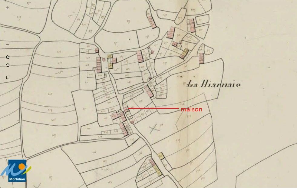 La maison de la Hiarnaie sur le cadastre de 1829 (A. D. du Morbihan, 3 P 244/21)Immatriculation