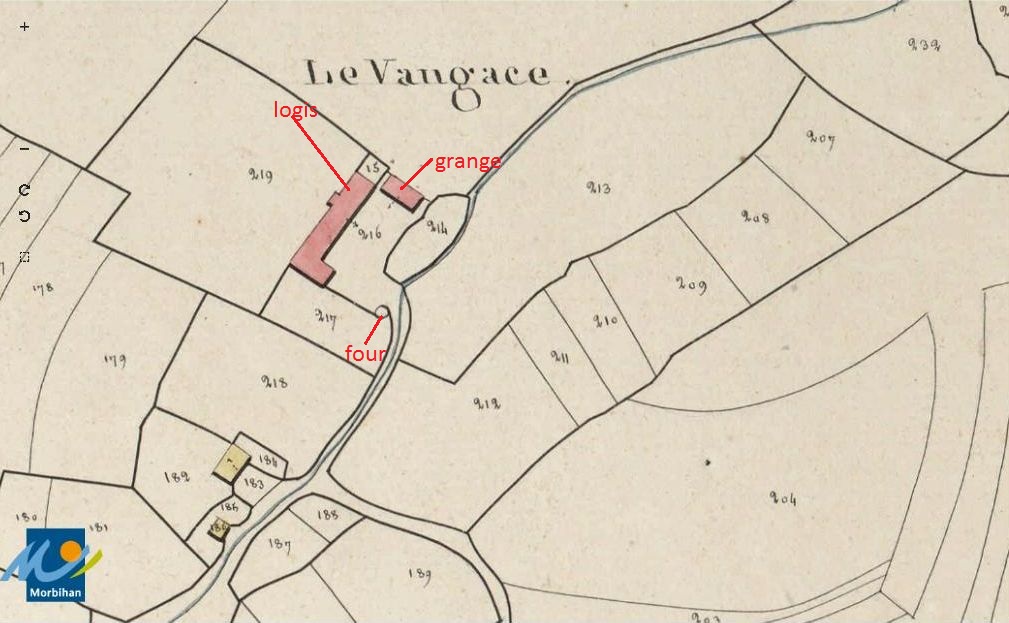 Le manoir sur le cadastre de 1824 (A. D. du Morbihan, 3 P 268/6)Immatriculation