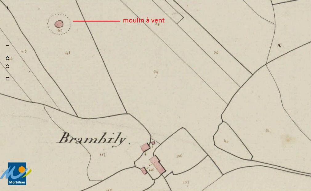 Le moulin à vent de Brambily sur le cadastre de 1829 (A. D. du Morbihan, série 3 P 286/14)Immatriculation