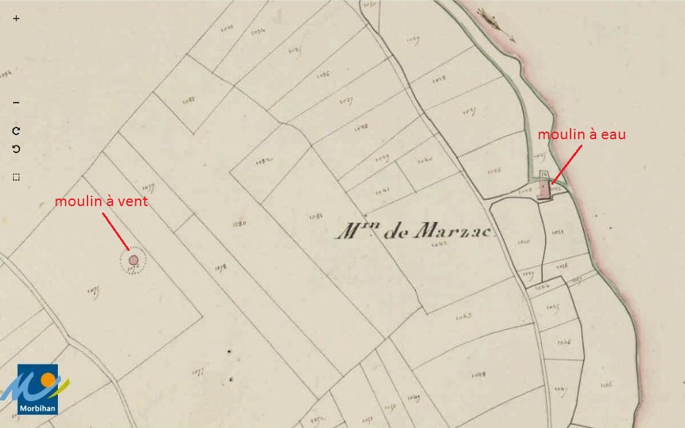 Les moulins à eau et à vent de Marzac sur le cadastre de 1829 (A. D. du Morbihan, série 3 P 286/17)Immatriculation