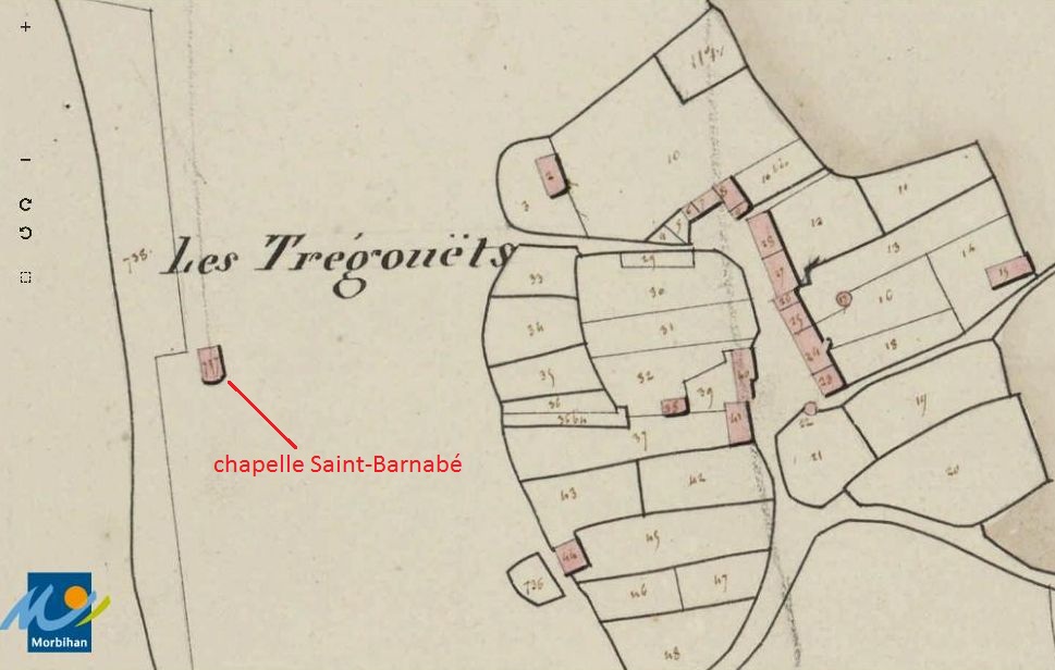 La chapelle Saint-Barnabé sur le cadastre de 1829 (A. D. du Morbihan, série 3 P 286/27)Immatriculation
