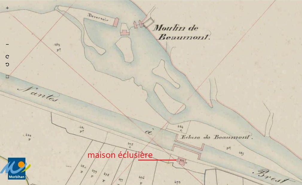 Le site d'écluse de Beaumont sur le cadastre de 1841 (A. D. du Morbihan, série 3 P 253/8)Immatriculation