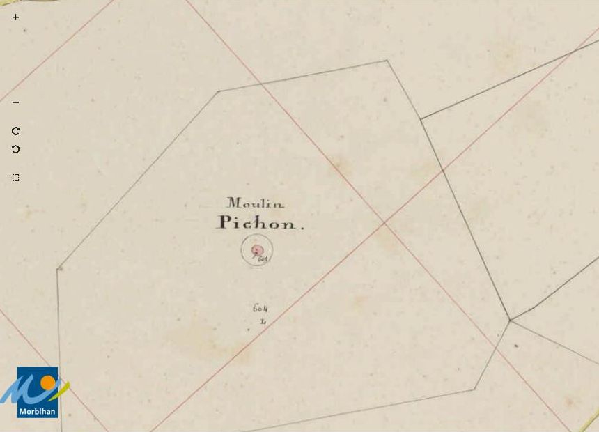 Le moulin à vent de Pichon sur le cadastre de 1841 (A. D. du Morbihan, série 3 P 253/18)Immatriculation
