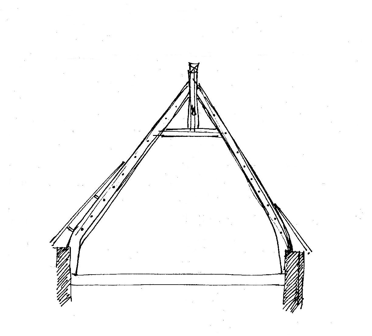 Maison, une ferme "upper-cruck : schéma réalisé par J. P. Ducouret en 1983Immatriculation