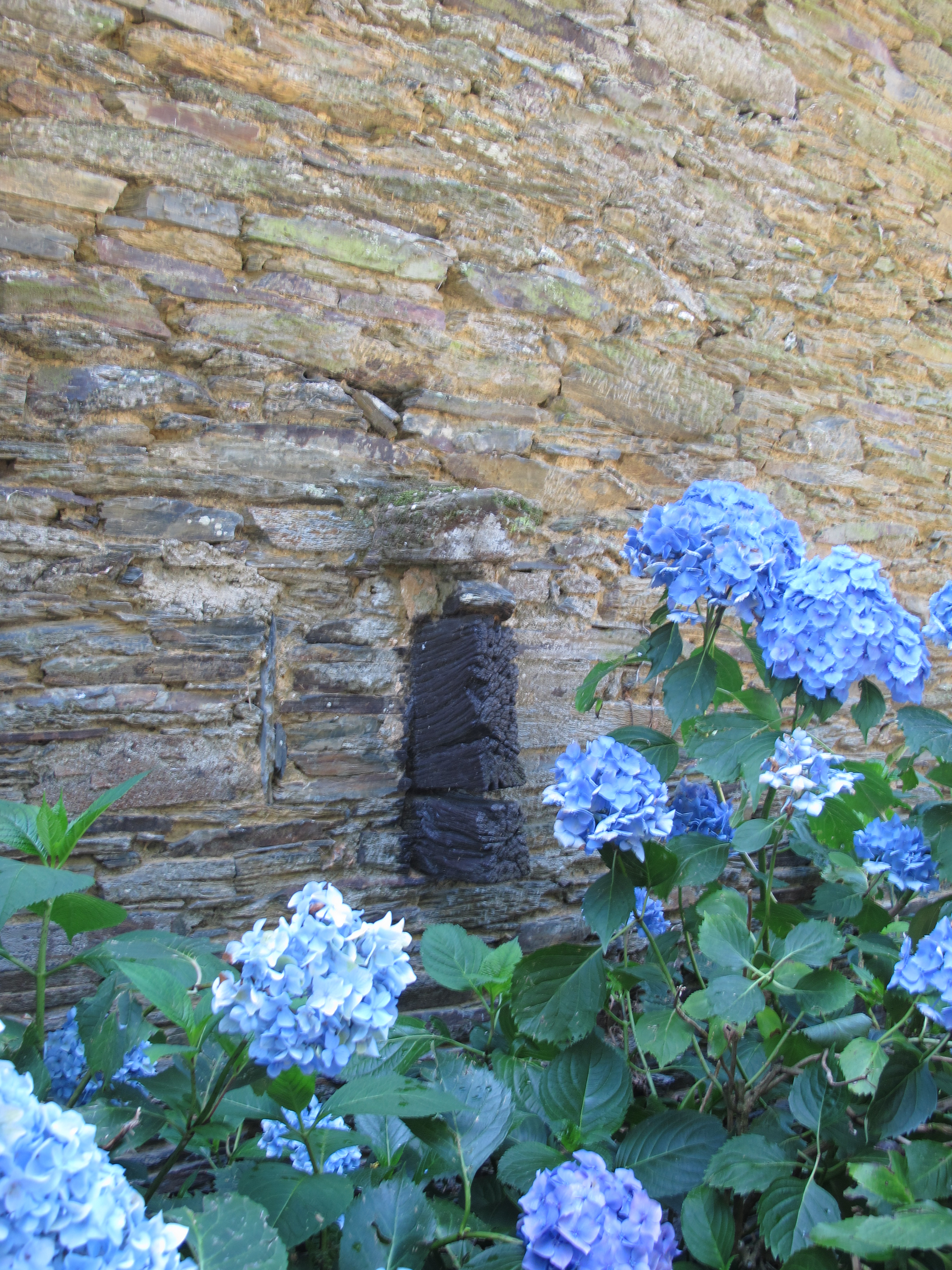 Logis, élévation est : une console en bois de la cheminée est de la salle, protégée par une plaque de schiste, le larmier (état en 2013)Immatriculation