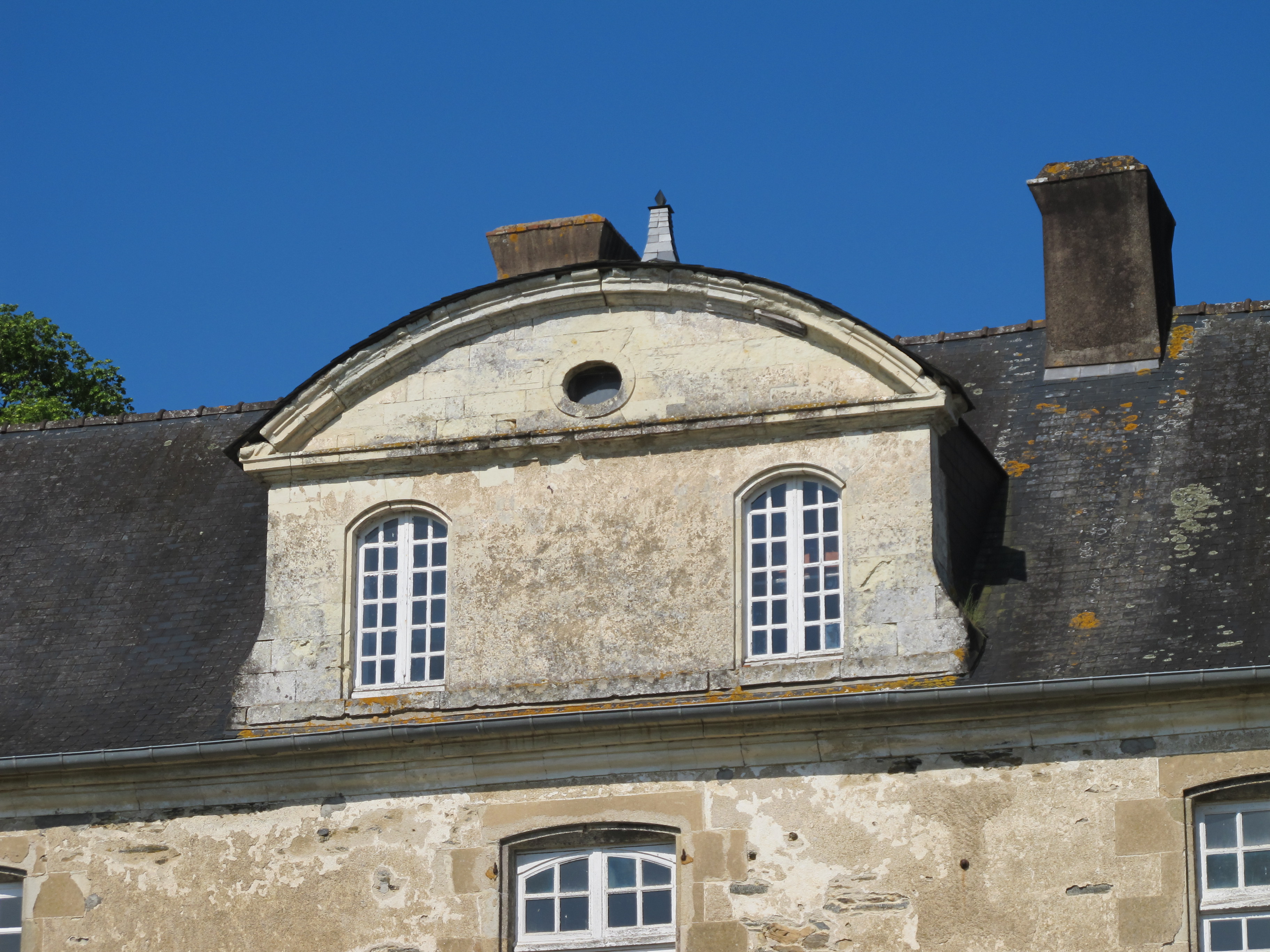 Château, corps central : la lucarne fronton (état en 2013)Immatriculation