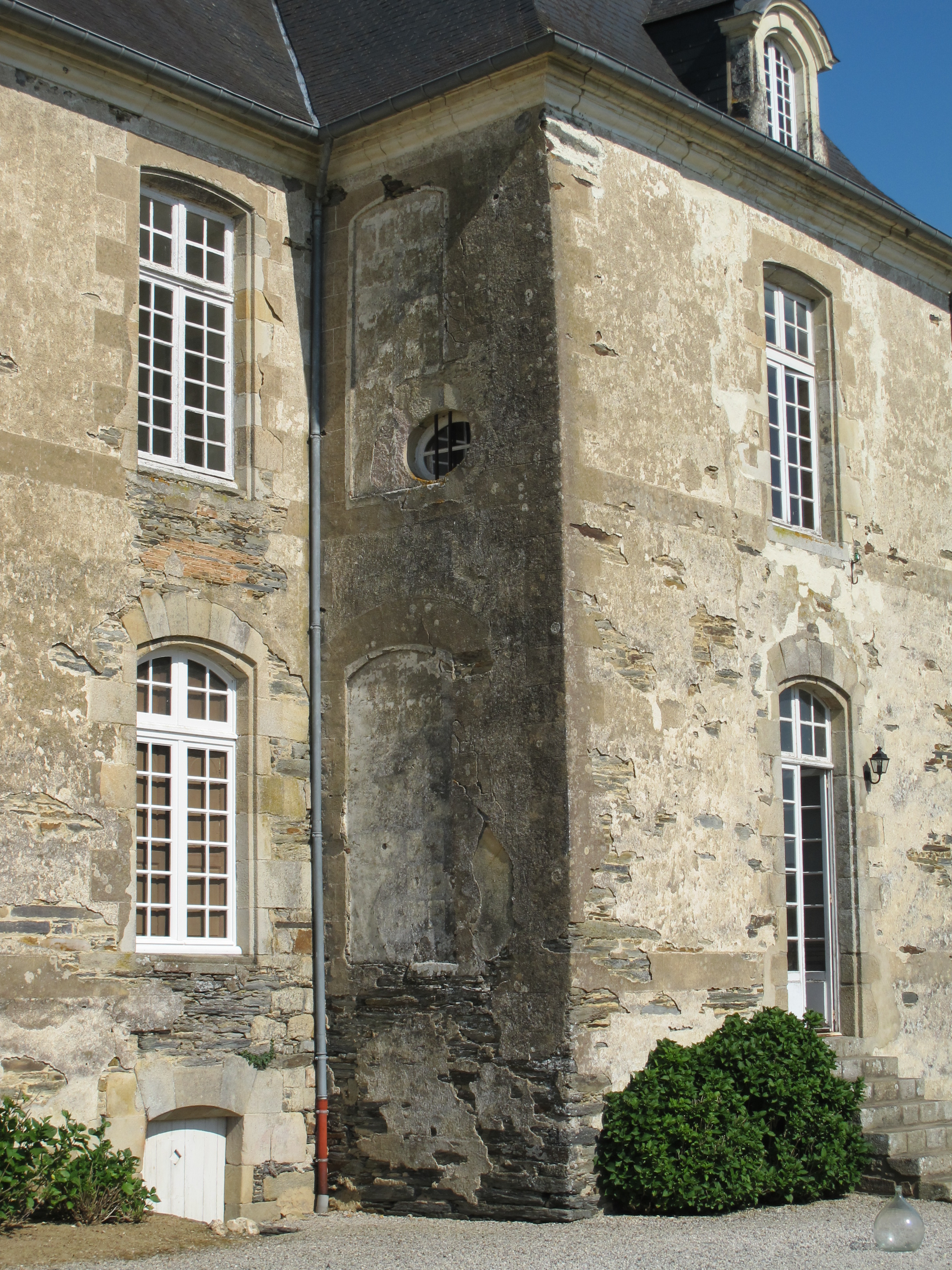 Château, élévation est, partie nord : sur le mur sud, les deux fenêtres ont été bouchées et repeintes en trompe-l'œil (état en 2013)Immatriculation