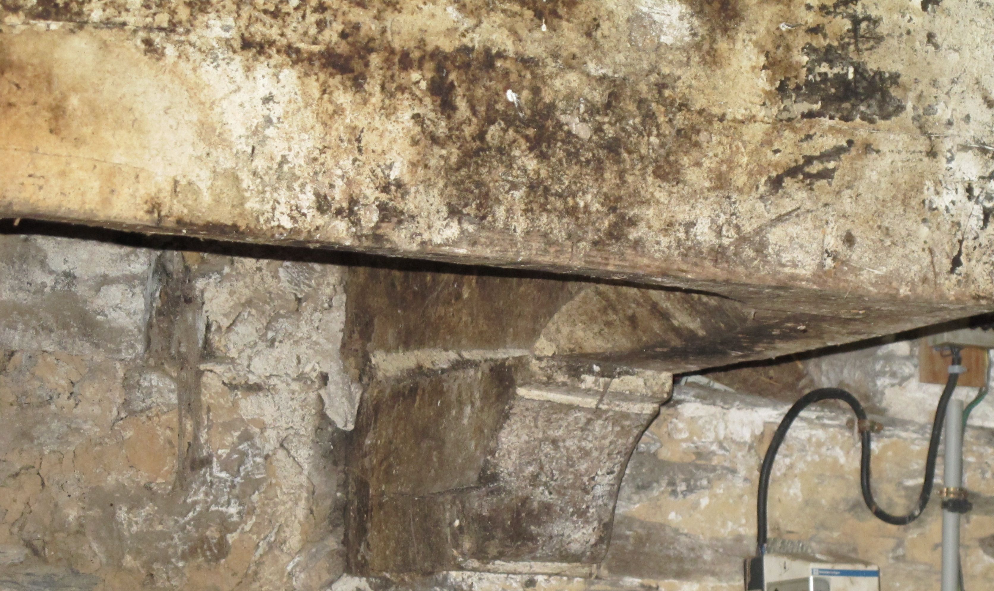 Le Bochat, ferme 2 : une des consoles moulurées qui soutiennent le linteau de la cheminée (état en 2013)Immatriculation