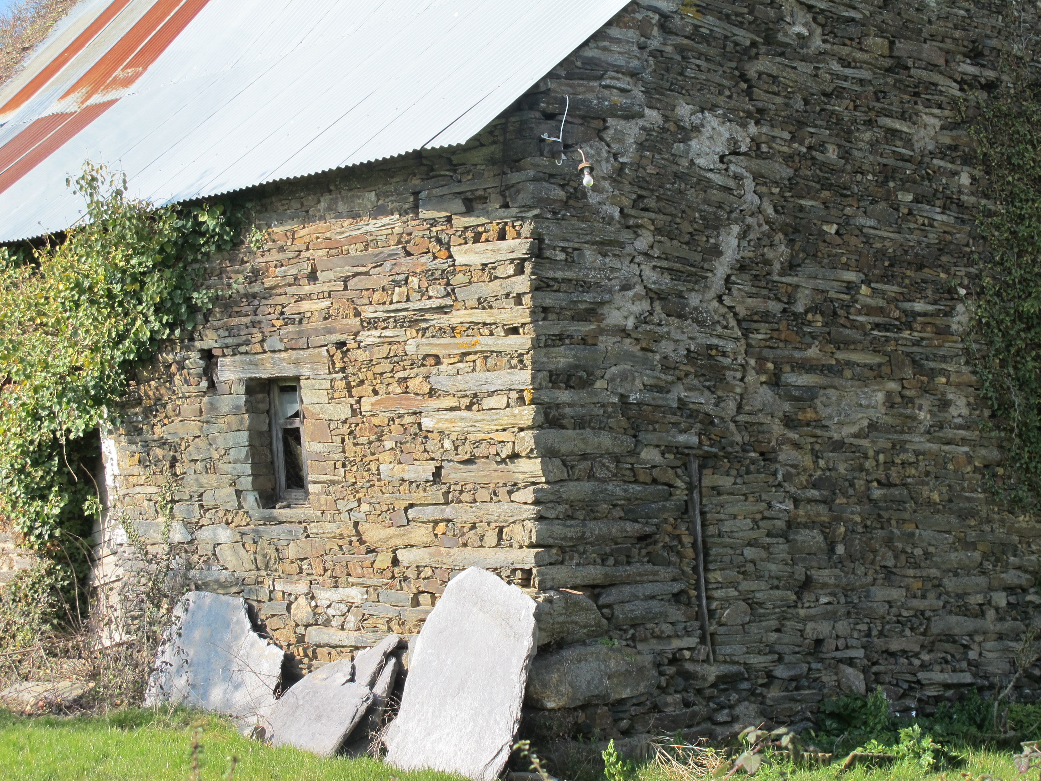 Les Gaudines de bas, ferme 2 : mise en oeuvre du schiste dans l'angle du bêtiment (état en 2013)Immatriculation