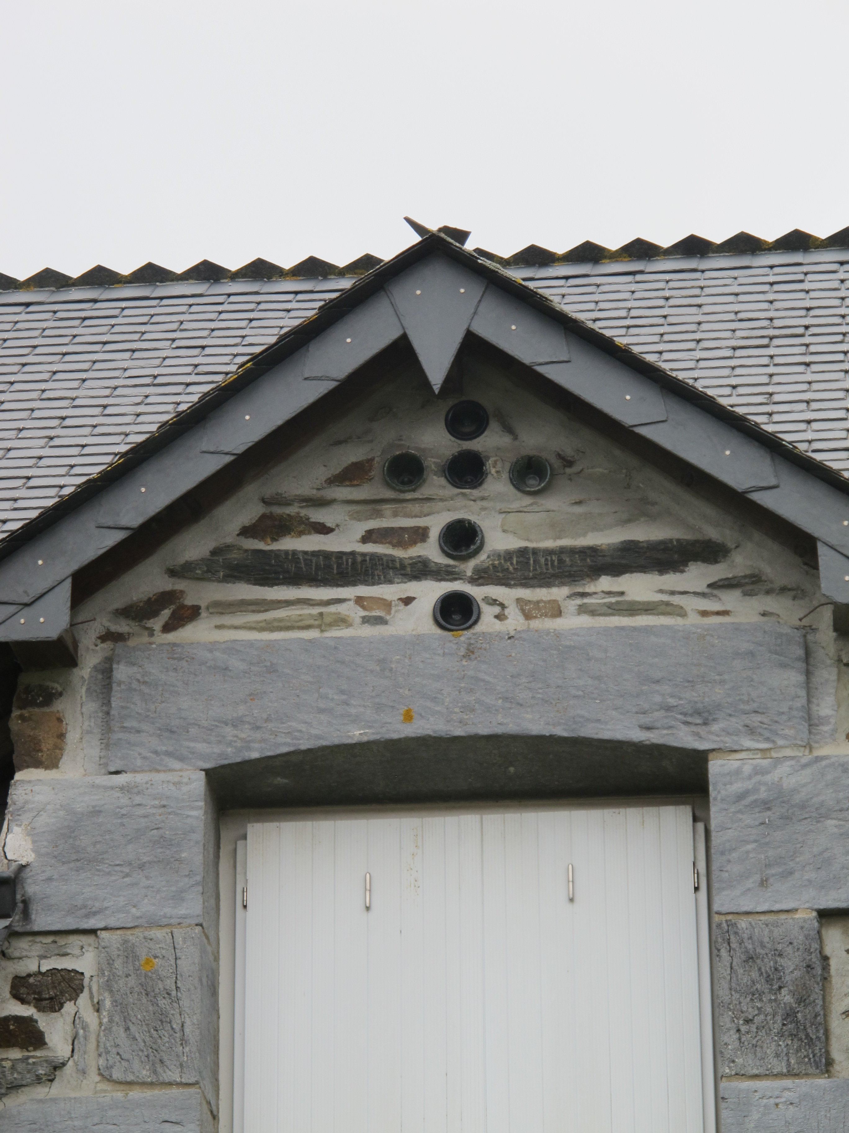 Les Rues Vonin, ferme, élévation sud : au-dessus de la lucarne, une croix en culs de bouteille (état en 2013)Immatriculation